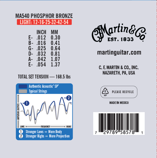 Martin MA535 Authentic Acoustic SP Phosphor Bronze Custom Light 6-String Acoustic Guitar Set