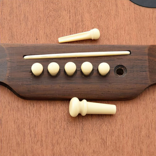 If you want your acoustic to play and sound its best, every detail matters. Our collection of acoustic bridge pins includes bone, wood, and modern materials, each selected for quality and function. We offer vintage-correct looks for pre-war Martins, unslotted bridge pins, Gibson bridge pins, and more reliable options that restore and improve.