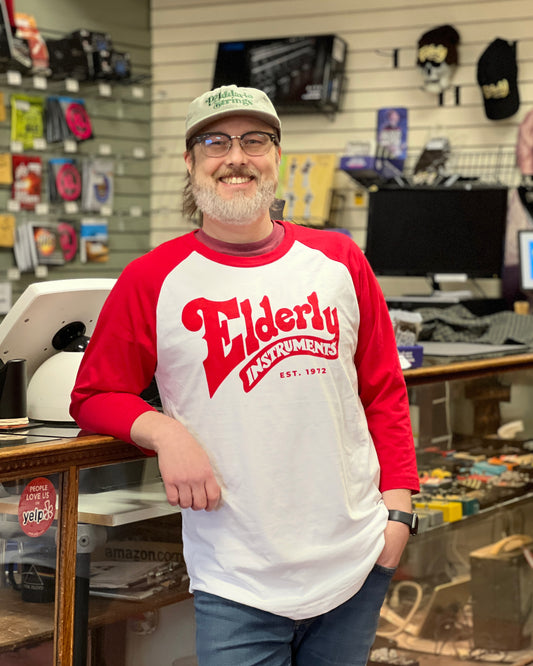 Elderly Instruments Logo Baseball Tee, Red (Various Sizes)