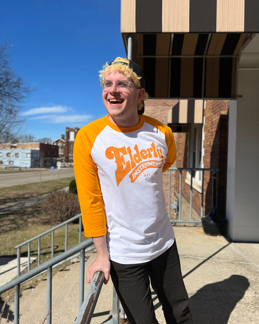 Elderly Instruments Logo Baseball Tee, Yellow (Various Sizes)