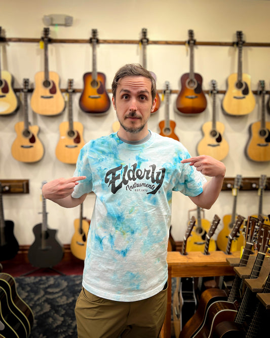 Elderly Instruments Tie-Dyed Logo Shirt, Light Blue Clouds Pattern (Various Sizes)