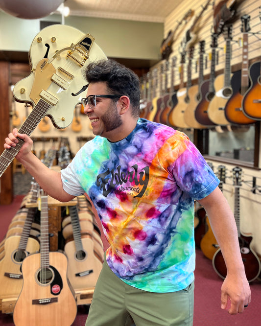 Elderly Instruments Tie-Dyed Logo Shirt, Rainbow Side Burst Pattern (Various Sizes)