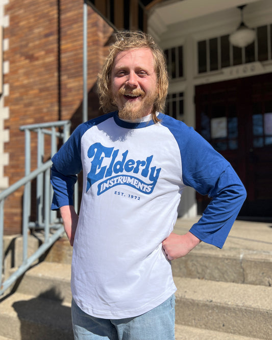 Elderly Instruments Logo Baseball Tee, Blue (Various Sizes)