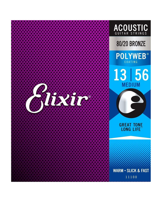 Elixir 11100 80/20 Bronze Polyweb Medium 6-String Acoustic Guitar Strings