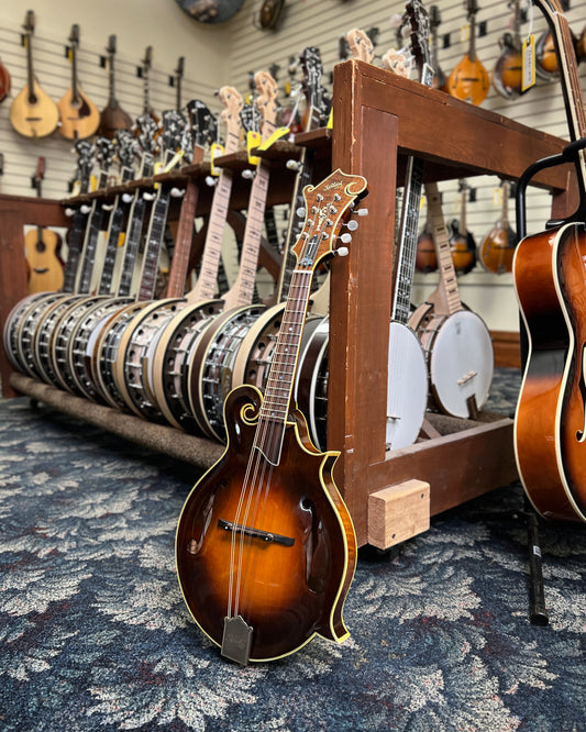 Select an F-style mandolin from Elderly Instruments and benefit from careful selection and setup. Each mandolin in this collection is chosen for quality, reliability, and musical character. Whether you’re seeking a traditional bluegrass sound or want an instrument with impressive appearance and feel, you'll find a suitable option. Order today and get a mandolin that’s ready for your next session—on stage, at home, or in the studio.