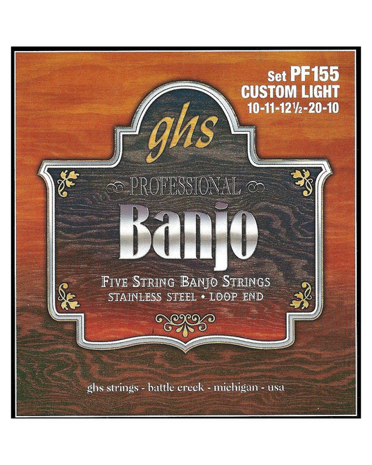 GHS PF155 Stainless Steel Loop End Custom Light Gauge 5-String Banjo Strings