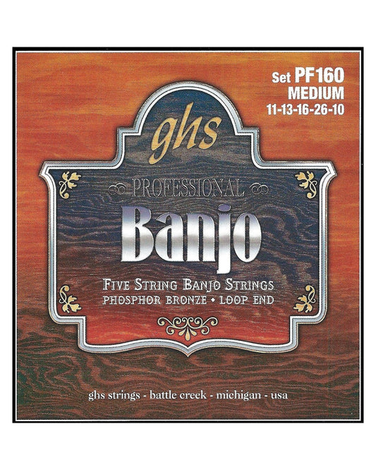 GHS PF160 Phosphor Bronze Loop End Medium Gauge 5-String Banjo Strings