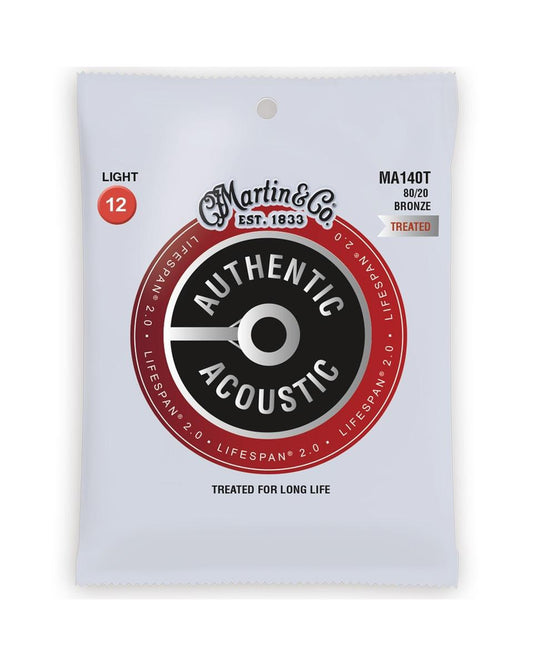 Martin MA140T Authentic Acoustic Lifespan 2.0 Treated 80/20 Bronze Light, Single 6-Str Set