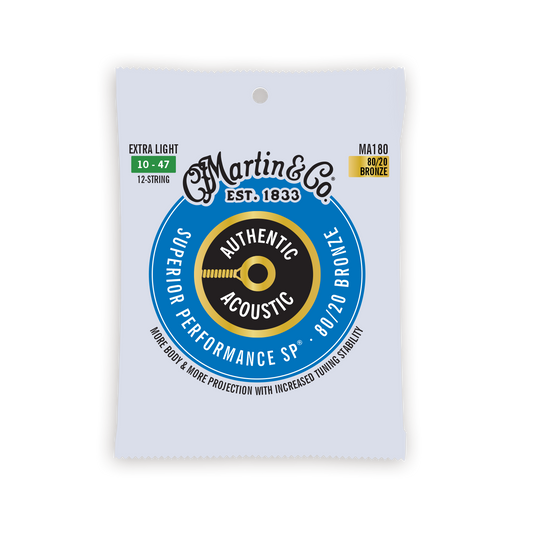 Martin MA180 Authentic Acoustic SP 80/20 Extra Light 12-String Acoustic Guitar Set