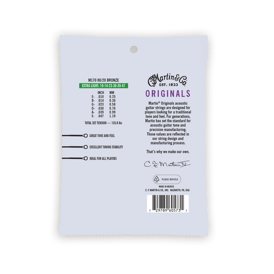 Martin Original M170 80/20 Bronze Extra Light 6-String Acoustic Guitar Set