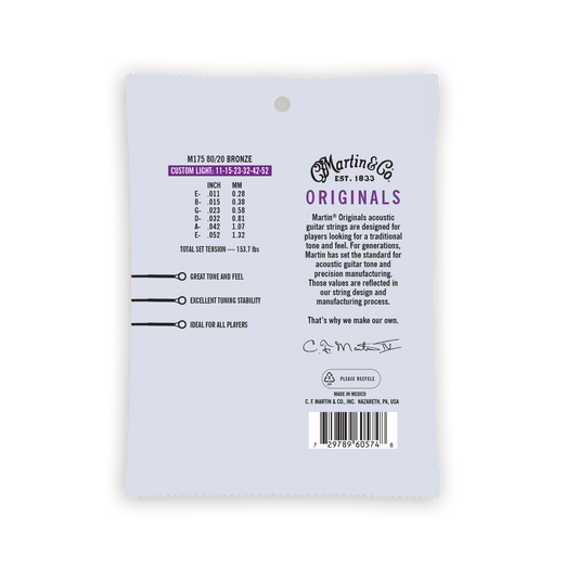 Martin Original M175 80/20 Bronze Custom Light 6-String Acoustic Guitar Set
