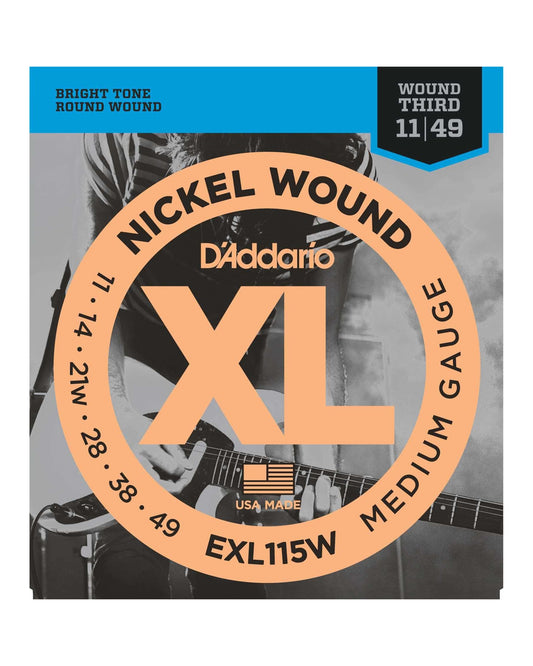 D'Addario EXL115W XL Nickel Round Wound Medium Gauge Electric Guitar Strings (Wound 3rd)