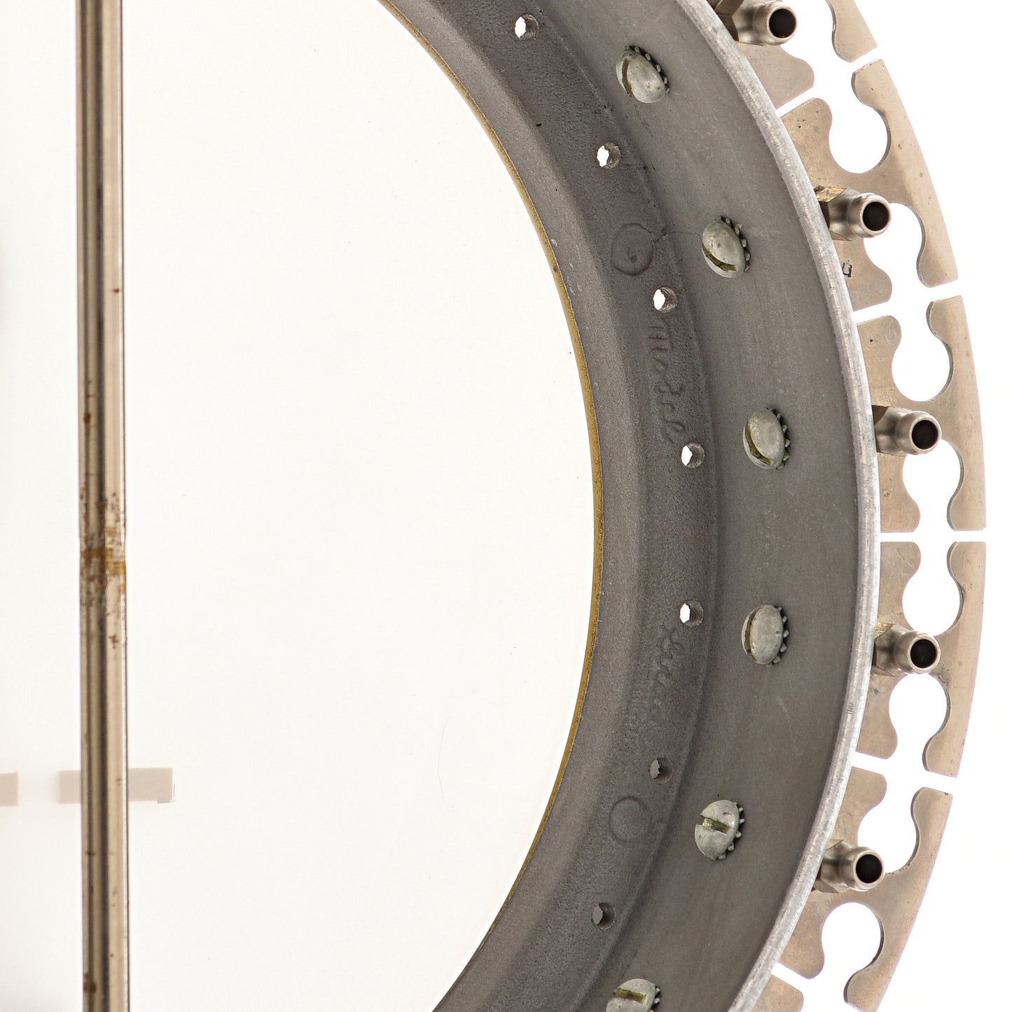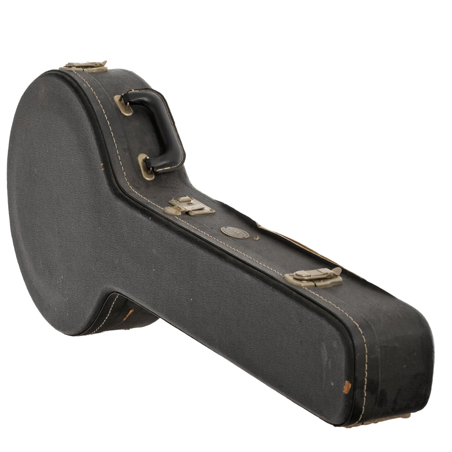 This Ode 6510 features an aluminum archtop rim, brass tone hoop, 5 piece mahogany/maple neck, ODE 3-way adjustable tailpiece, and an ebony fingerboard. Shubb 5th string capo installed. Original hard shell case. Made in USA.