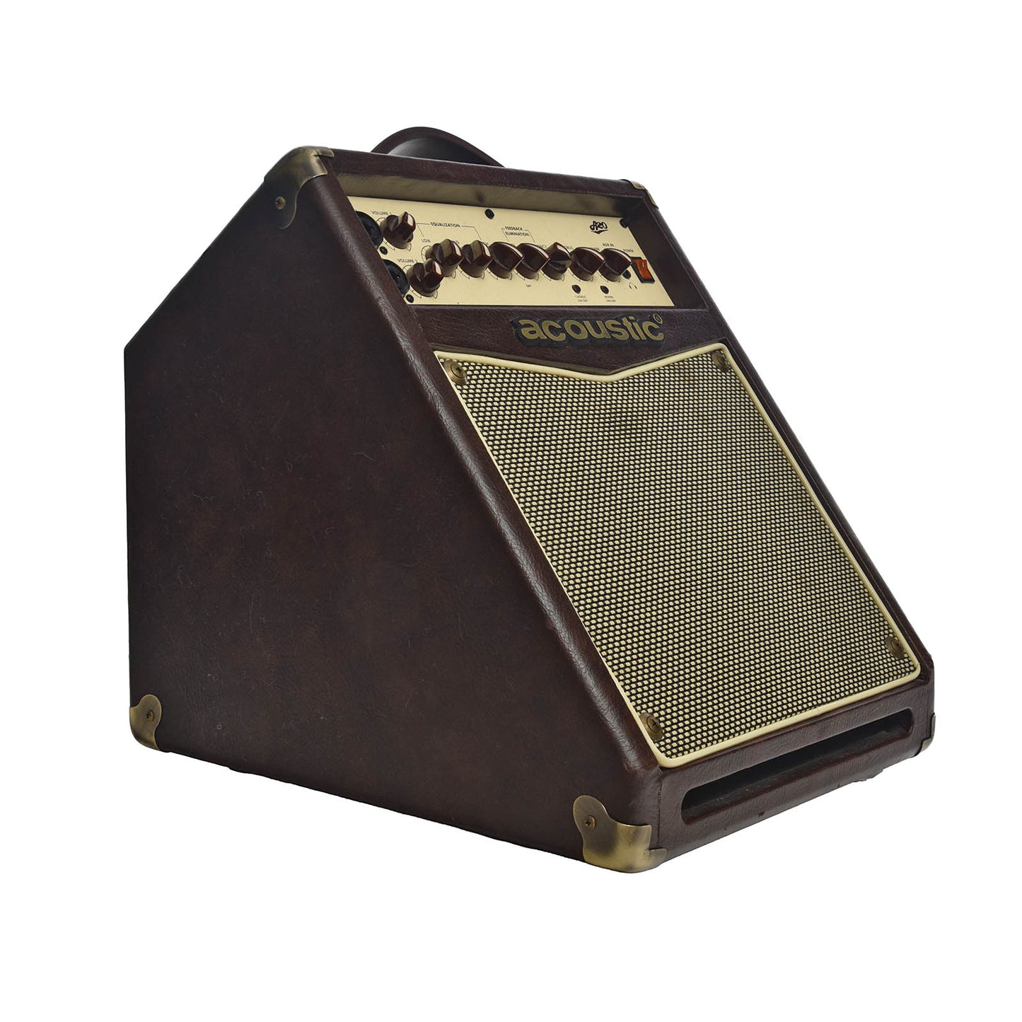 An Acoustic brand amp for acoustic instruments. Equipped with a 1X8 co-axial speaker and digital effects, this two channel amp pulls 20 watt of power.