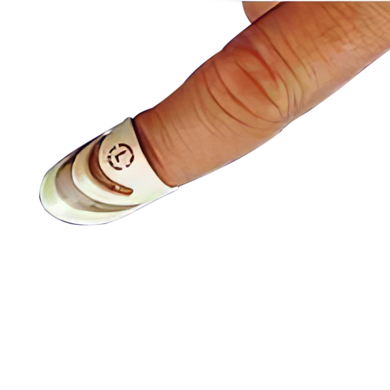Used as a fingernail substitute on the nail side of your finger. Trim to the correct length. Instructions included. Diameter of 1/2 to 9/16 inch.