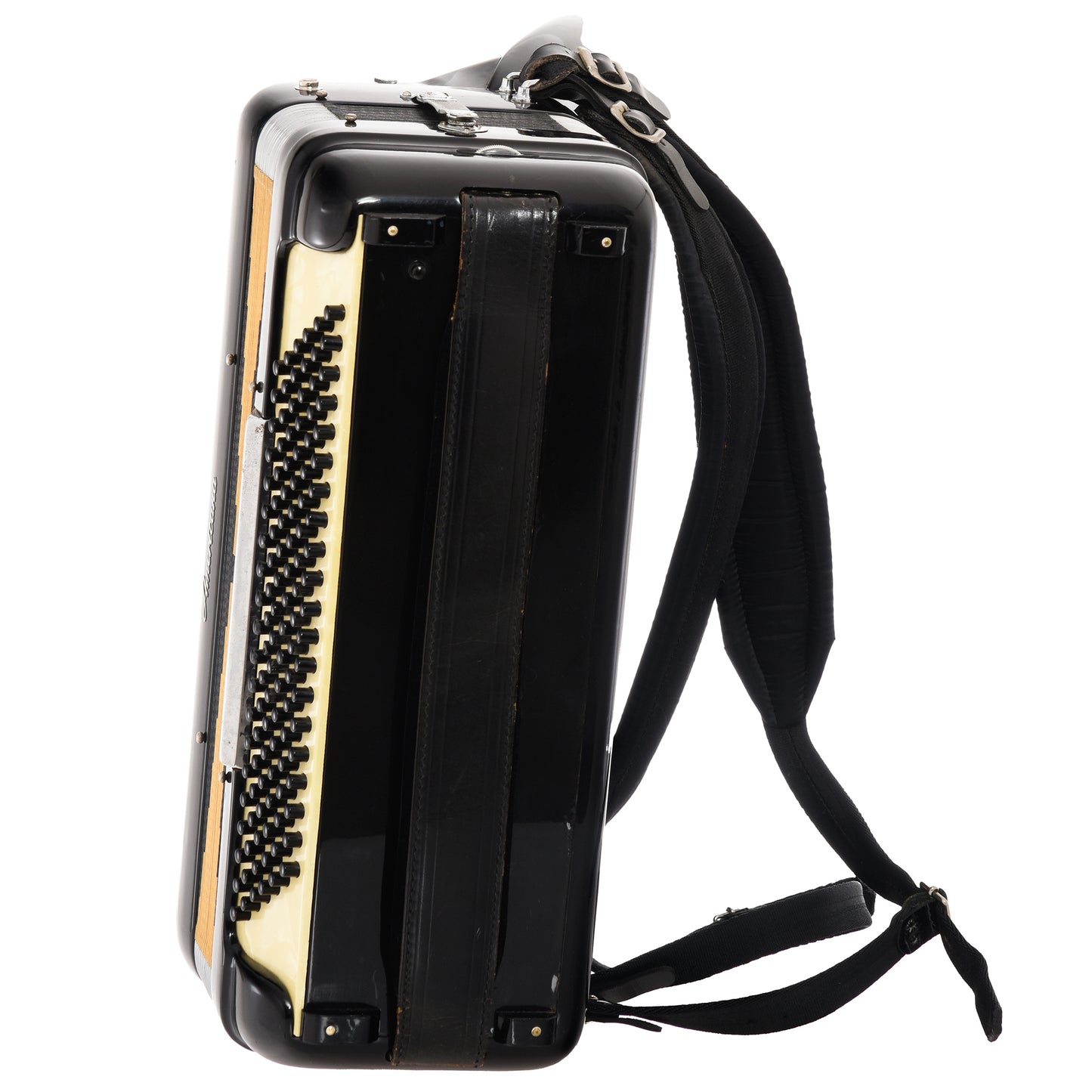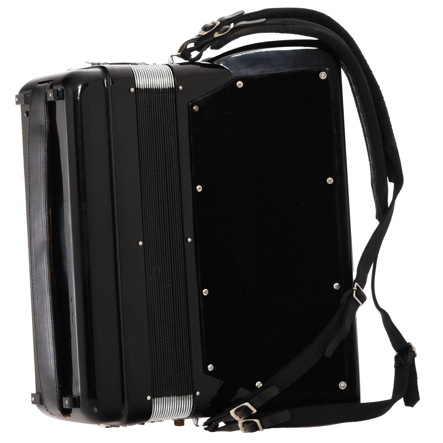Plenty of good usable sounds, black covering, fancy grill, 3-1/3 octave keyboard, 120 bass buttons, built in Italy, VG-EC
