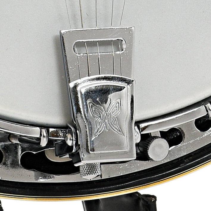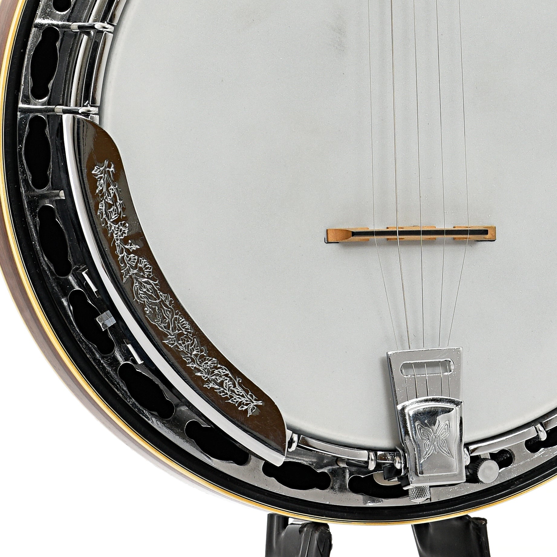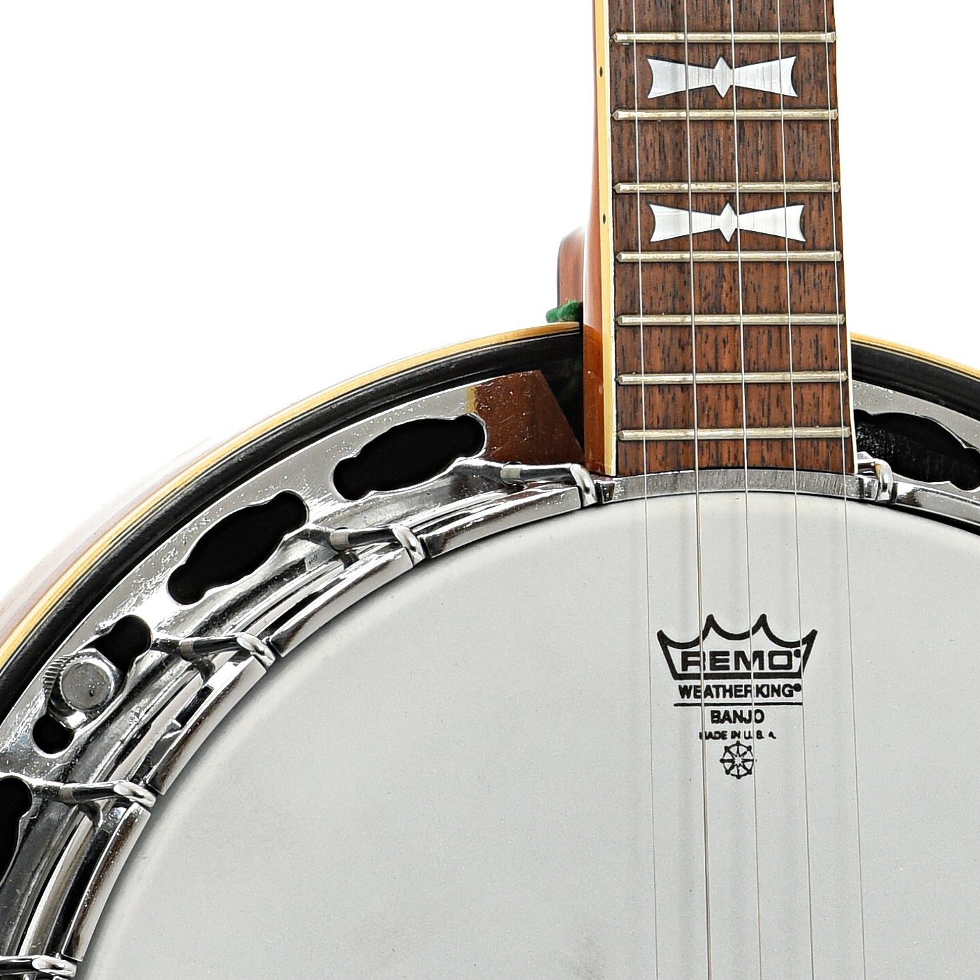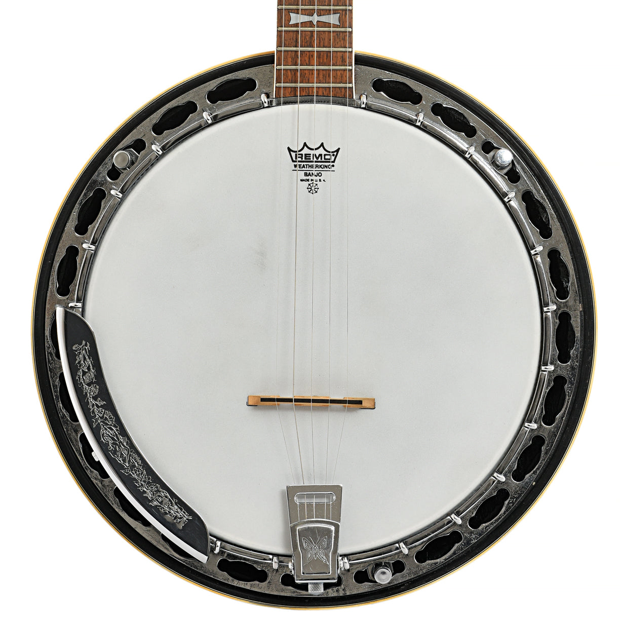 From Japan comes this nice and affordable bluegrass banjo, features include 1-piece flange, flathead tone ring, multi-ply, rosewood fingerboard with bow-tie inlays on a mahogany neck. Hard foam gigbag (busted zipper). Made in Japan.