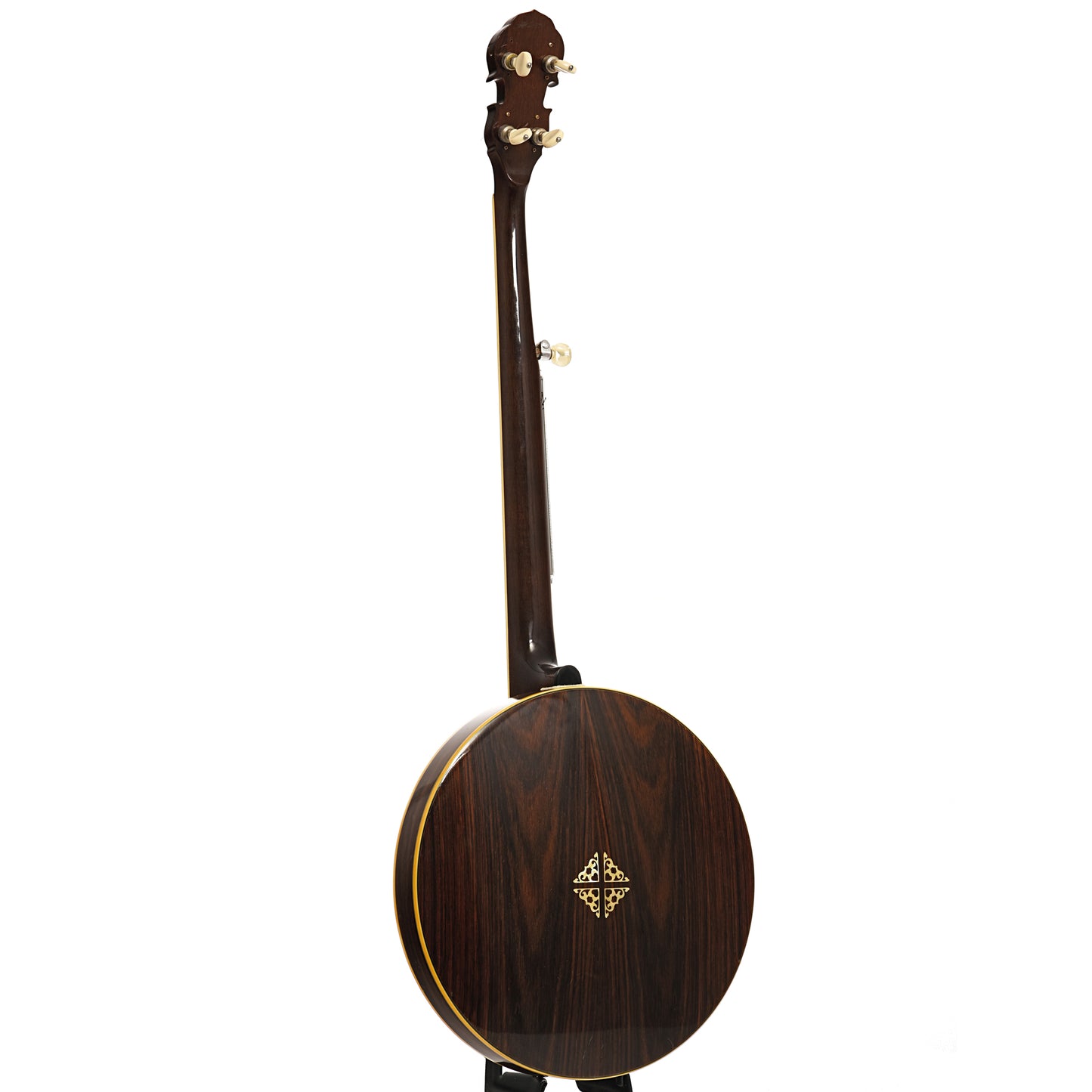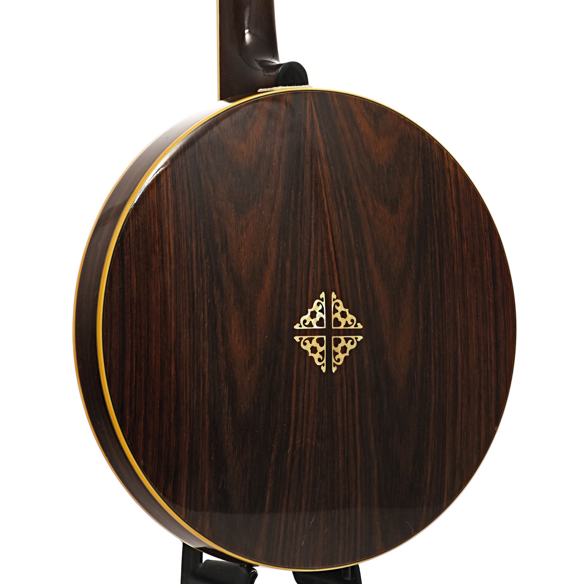 - Double bound rosewood veneer resonator with pearloid inlay