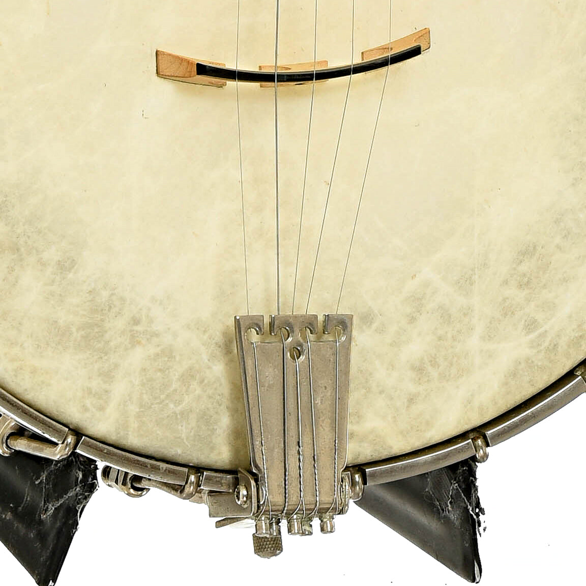 Bart Reiter banjos were made in mid-Michigan and are still quite popular! This Professional banjo has a maple neck and a double tortoise plastic-bound 8-f-hole internal resonator and rim. The bound ebony fingerboard features dot and star inlays. It’s equipped with a Bacon-style tone ring, geared tuners and a geared 5th string peg. Original hard shell case. Made in USA.