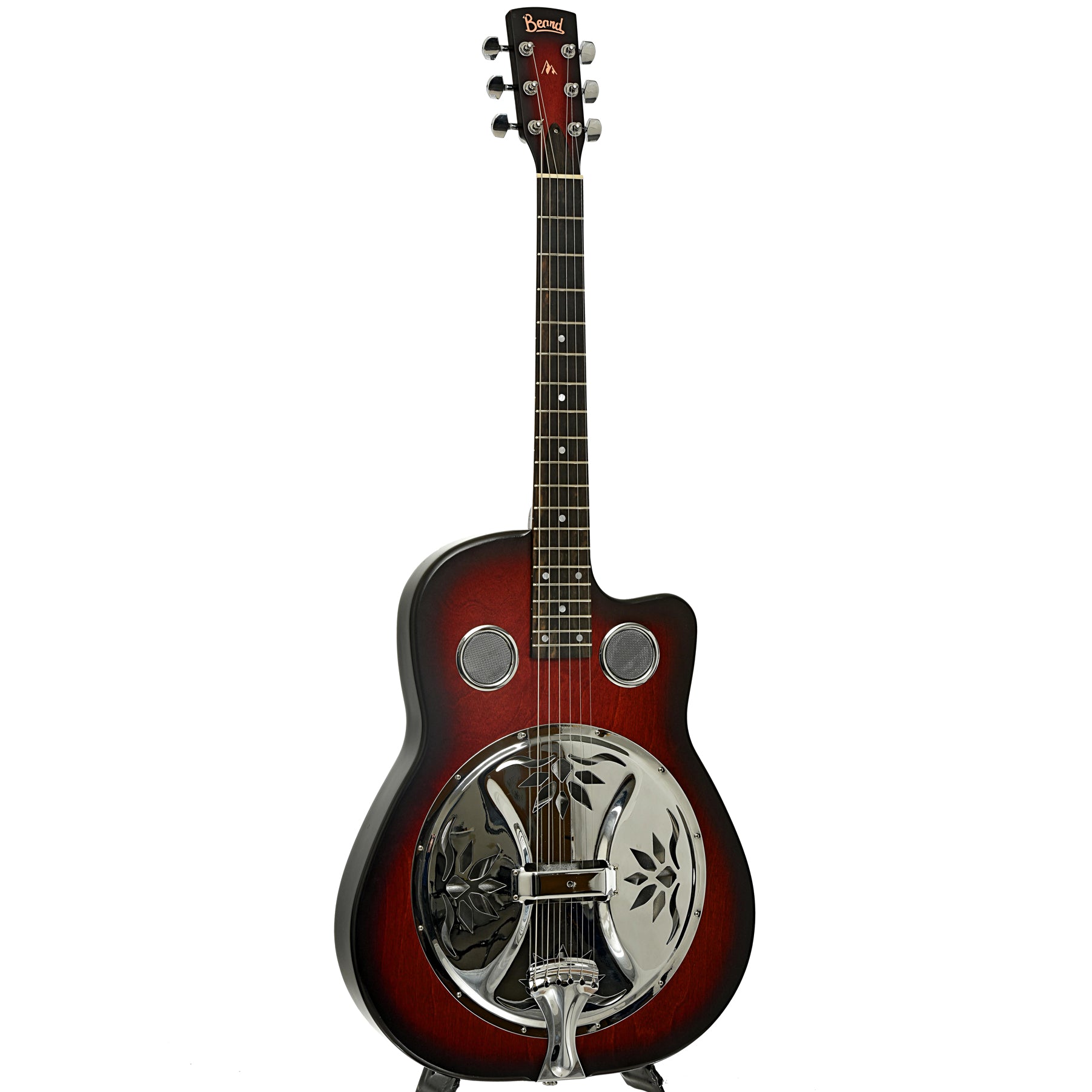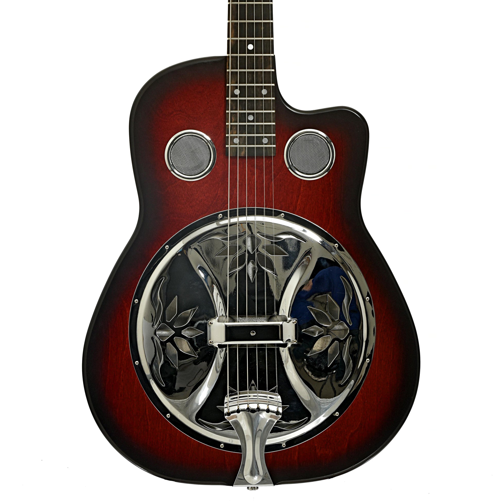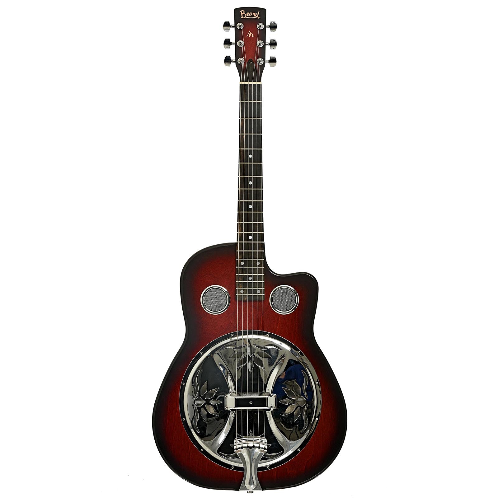 Want awesome amplified resonator tone in a roundneck? Look no further than this Beard Copper Mountain. The composite back design of this increases volume and projection and produces a true resonator tone with lots of volume. Features a birch top, composite sides and arched back, #14 spider bridge, aluminum cone, equipped with a Fishman Nashville pickup system. Gigbag. Made in USA.