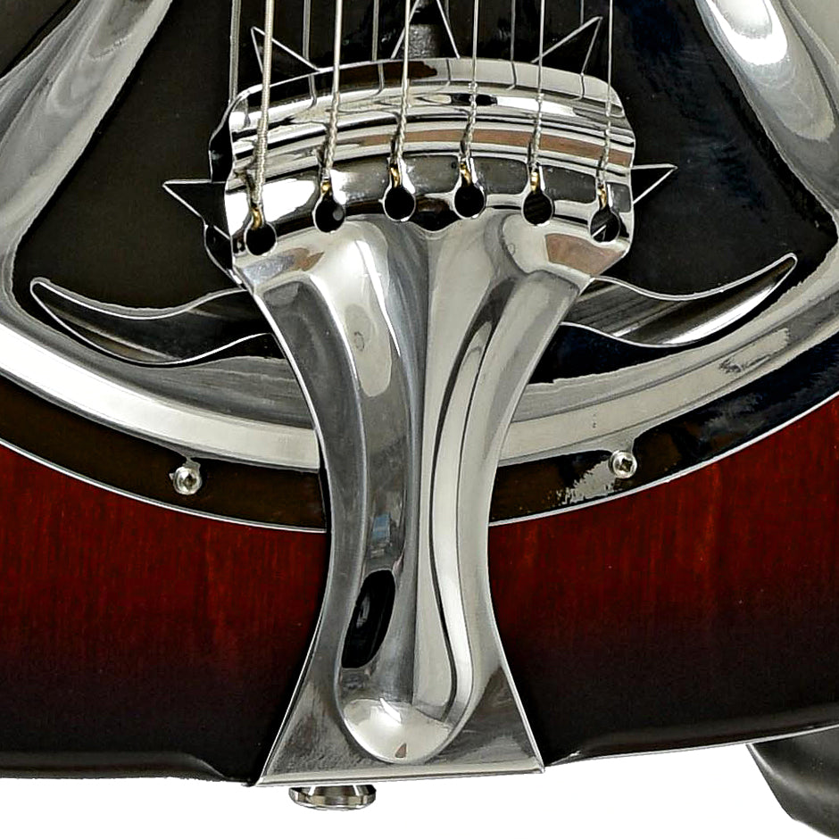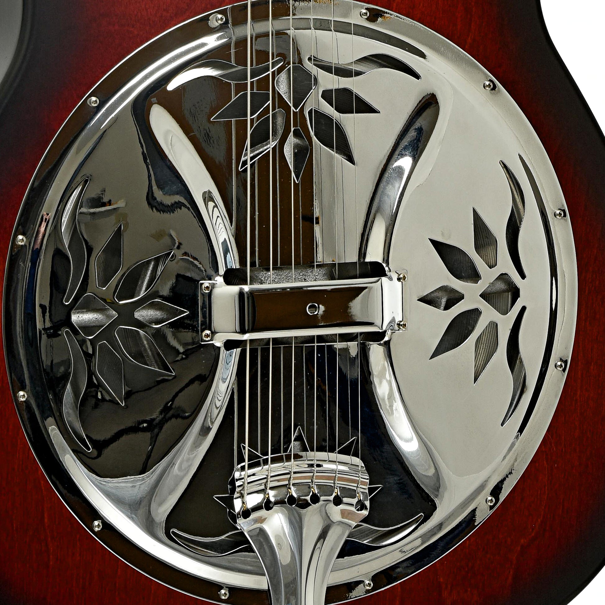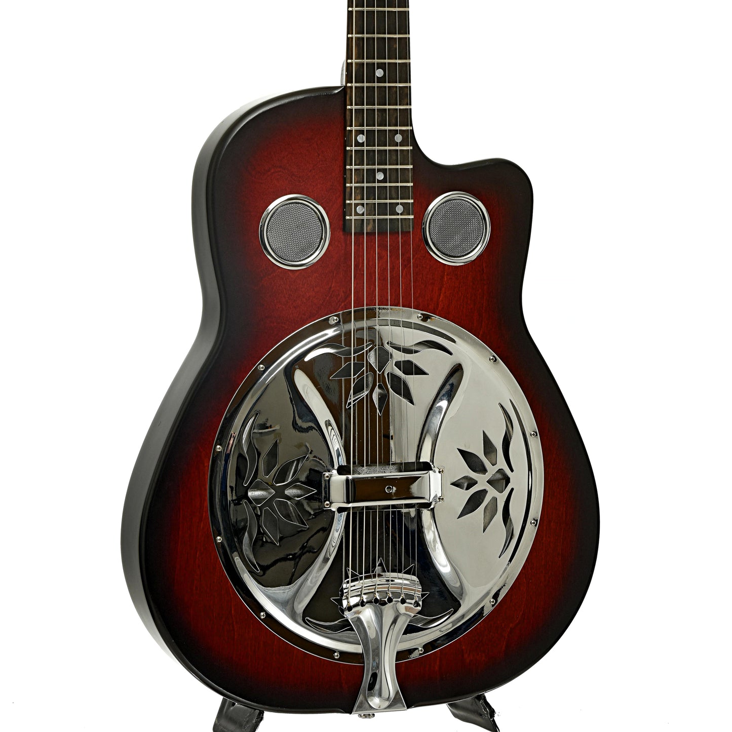 Want awesome amplified resonator tone in a roundneck? Look no further than this Beard Copper Mountain. The composite back design of this increases volume and projection and produces a true resonator tone with lots of volume. Features a birch top, composite sides and arched back, #14 spider bridge, aluminum cone, equipped with a Fishman Nashville pickup system. Gigbag. Made in USA.