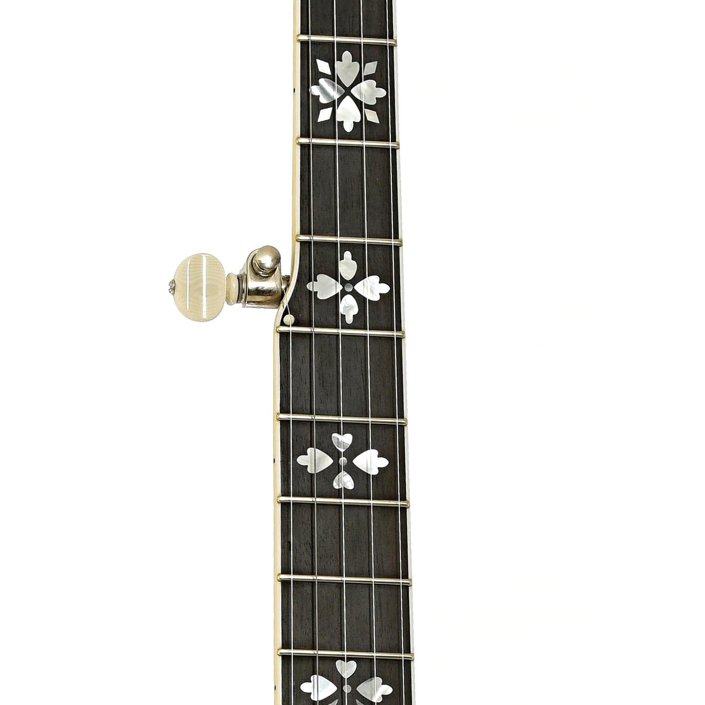 Five Star planetary tuners and geared 5th string, ivoroid buttons - Ebony peghead overlay features pearl logo and floral inlay