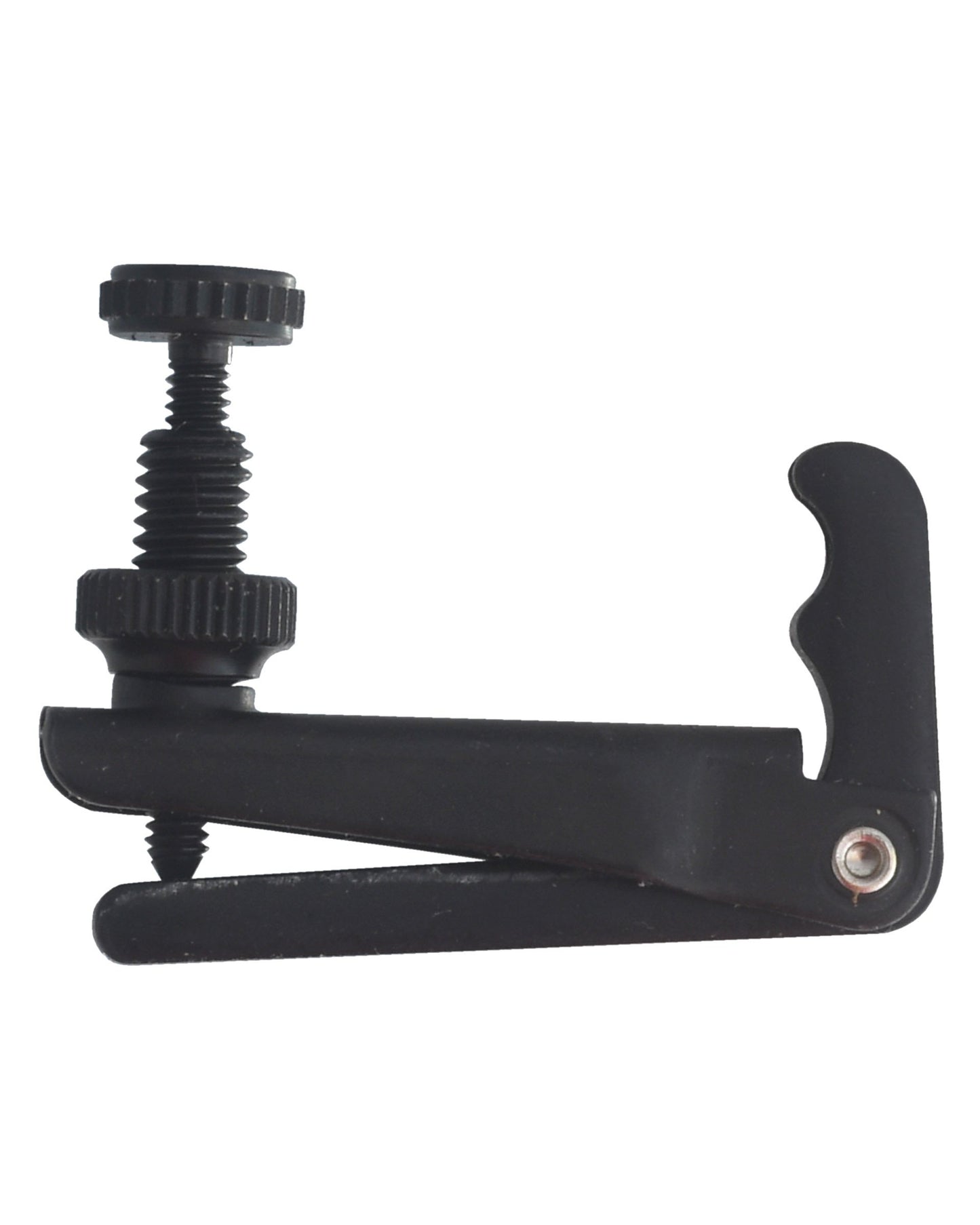 Black fine tuner for 4/4 size violin. Made in Germany.