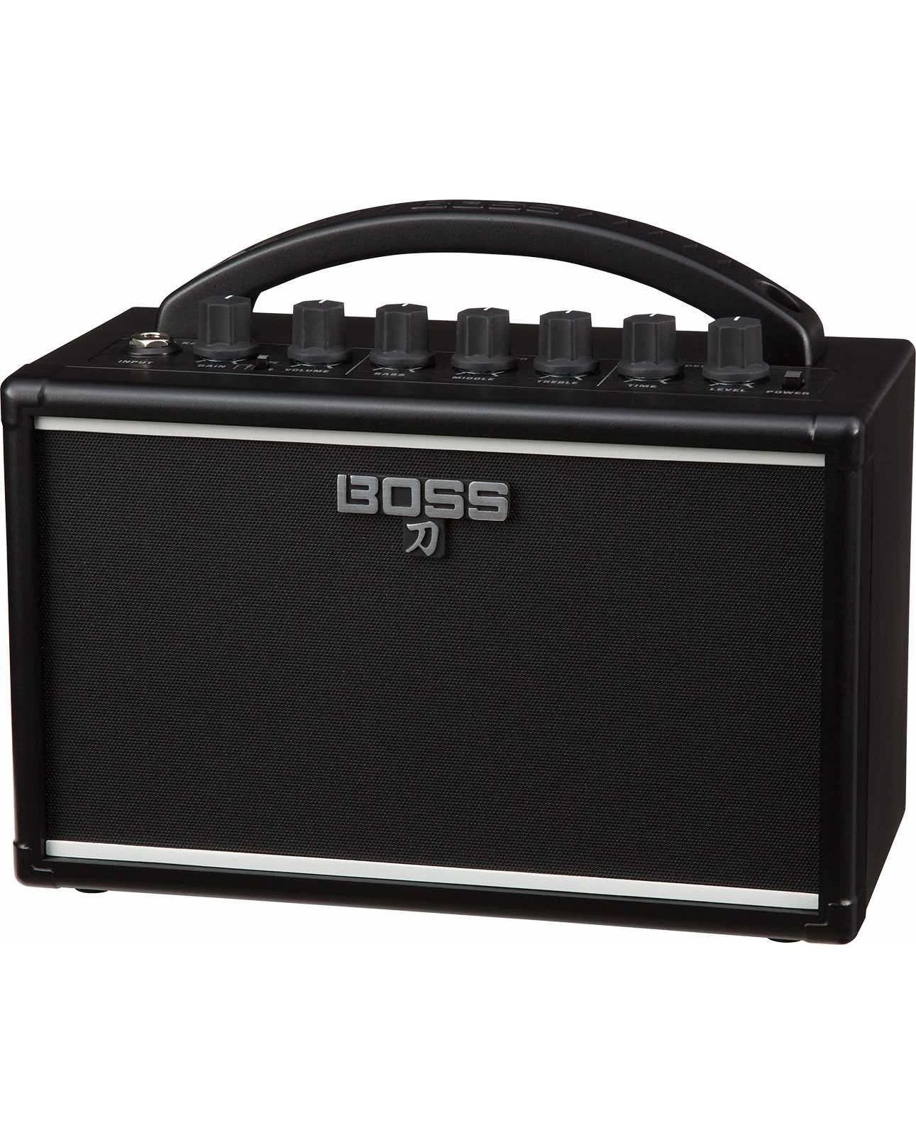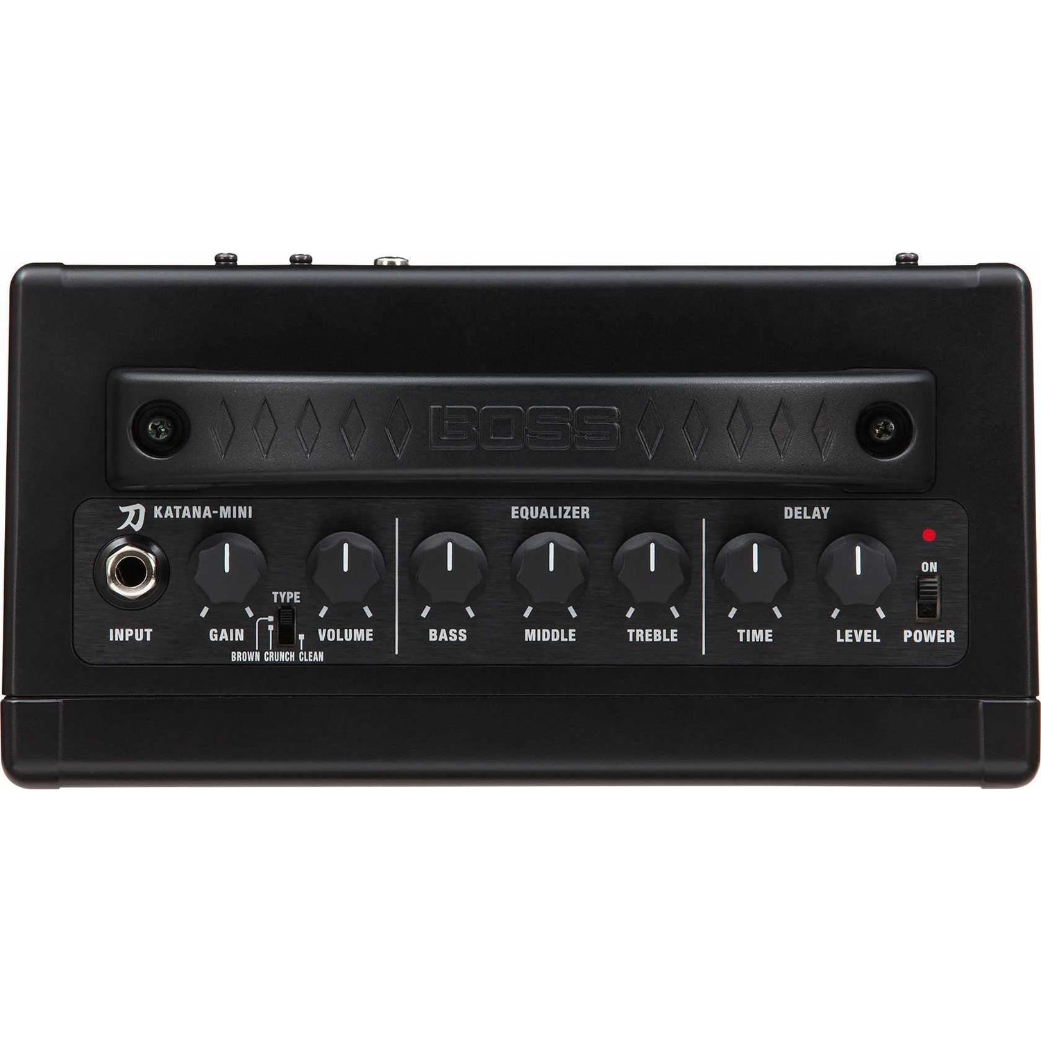 The Katana Mini delivers serious tone in a small, go-anywhere amp that runs on batteries. This miniature powerhouse features an authentic multi-stage analog gain circuit (brown, crunch, and clean) for big, expressive sound, plus a traditional analog EQ and onboard tape-style delay.