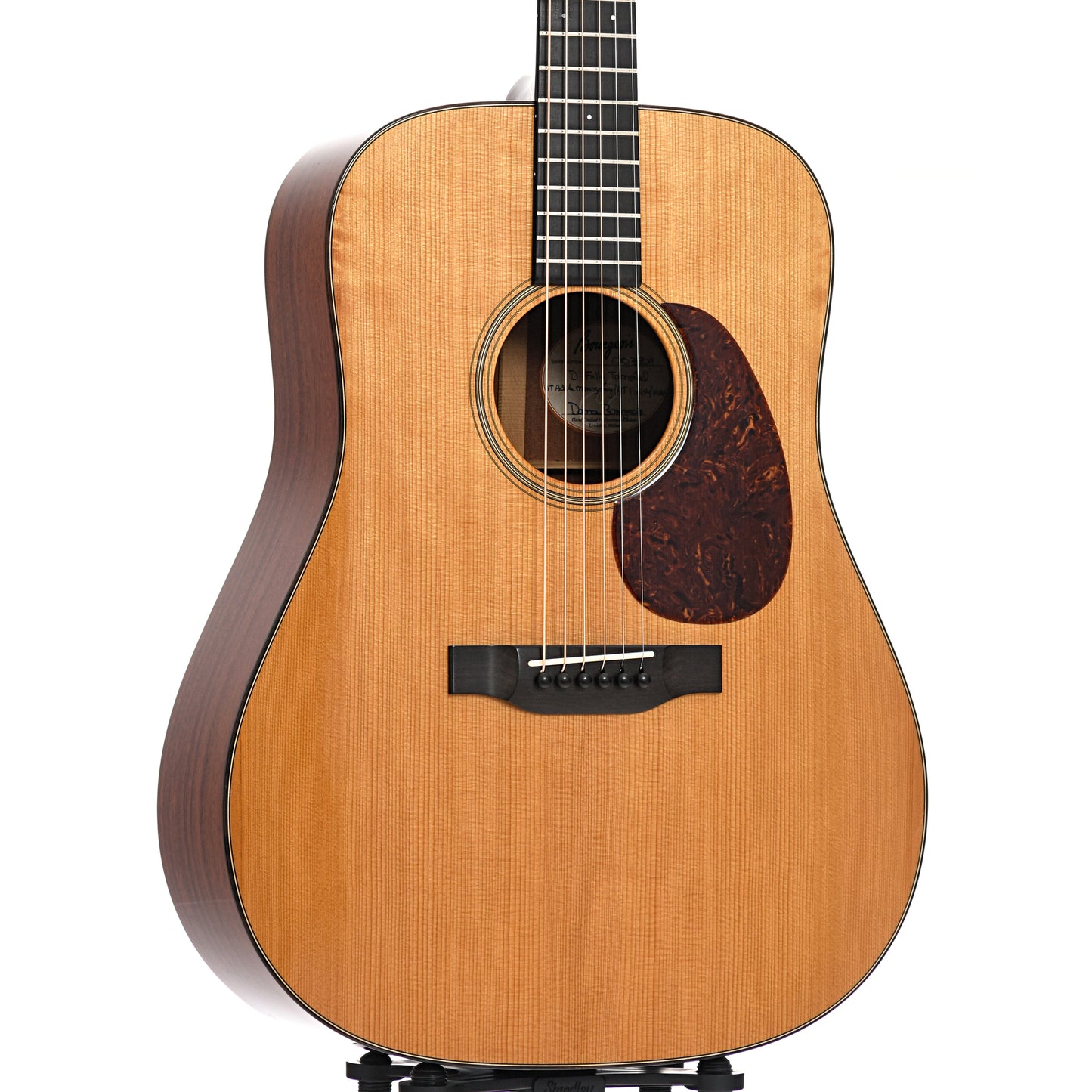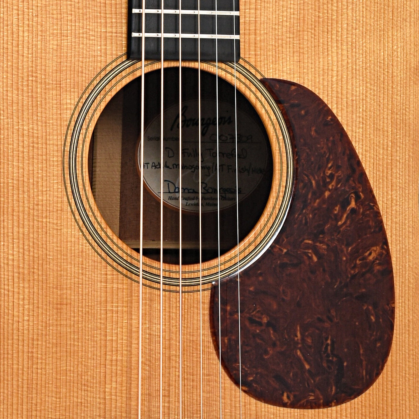 Huge sound, double bound fully torrefied body, Adirondack spruce top, scalloped braces, mahogany sides, back and neck, ebony fretboard and bridge, EC