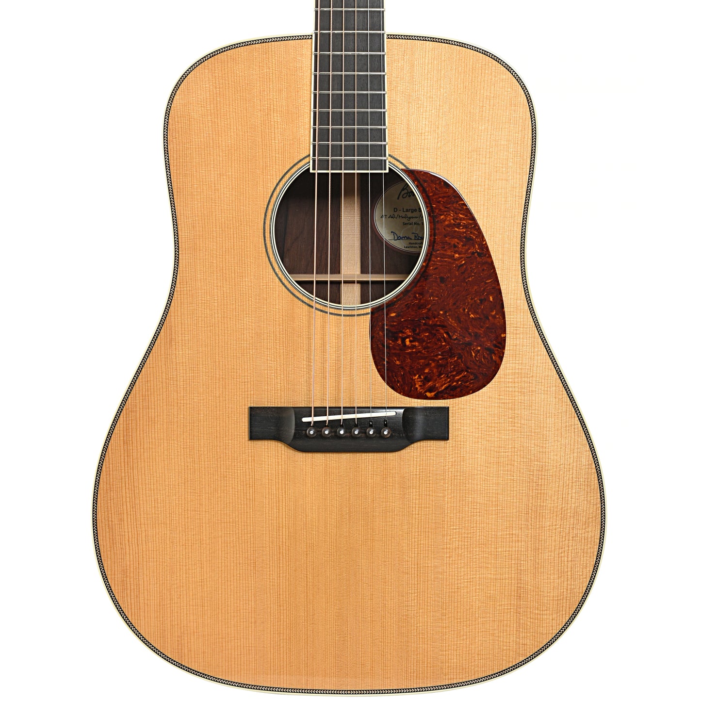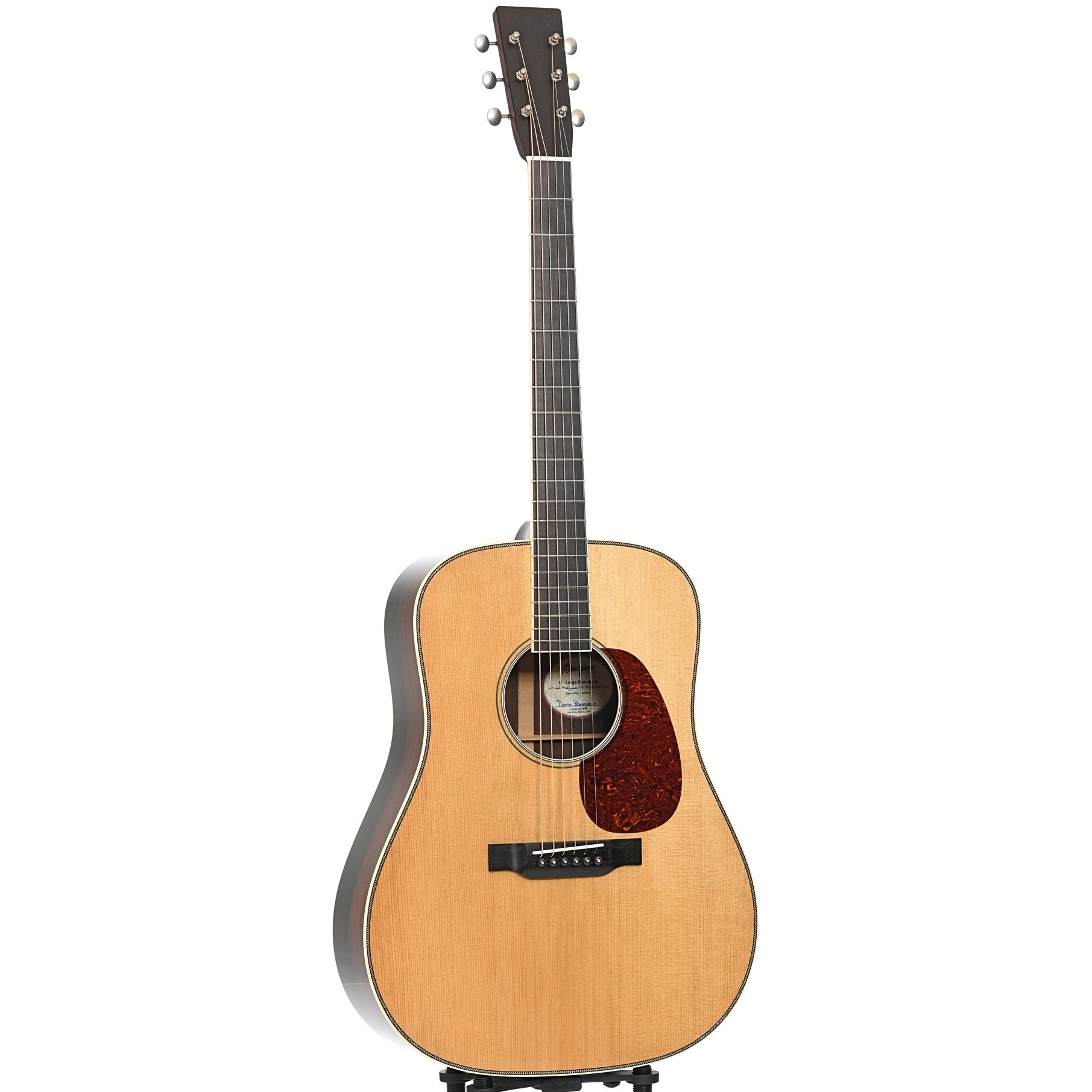 Built with a larger soundhole for increased projection, this Bourgeois D-Large Soundhole has premium features of Aged Tone (torrefied) Adirondack spruce top, with Madagascar rosewood back and sides from Dana Bourgeois' collection, and a 14-fret mahogany neck. It features protein glue construction and Aged Tone scalloped bracing. Handsome appointments include an ivoroid soundhole rosette, herringbone top purfling, a zig-zag backstrip, and Waverly Relic nickel open gear tuners. Original hard shell case. Made in USA.