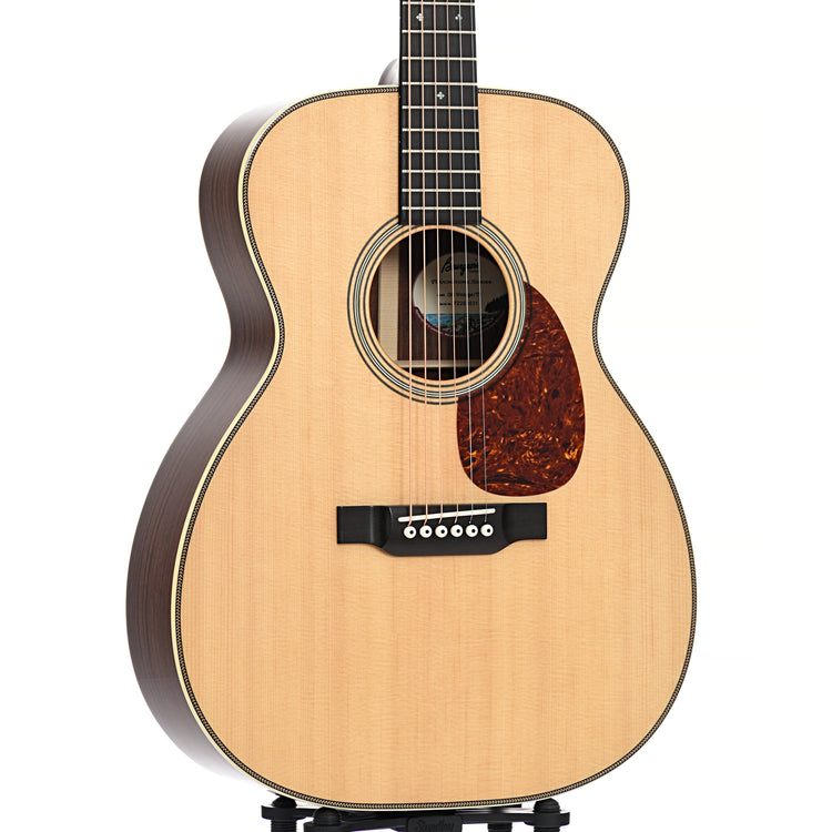 An exciting collaboration between Bourgeois guitars and Eastman, the Bourgeois Touchstone Series all-solid Vintage/TS OM features old-growth Alaskan Sitka spruce tops and Adirondack braces that are selected and hand-voiced in Maine by Dana Bourgeois and his team. The Indian Rosewood back and sides are built by a small, elite group of luthiers from Eastman that have been trained in Bourgeois' techniques and ethos. It's a top-tier, well-crafted guitar that makes Bourgeois quality and performance more affordable.