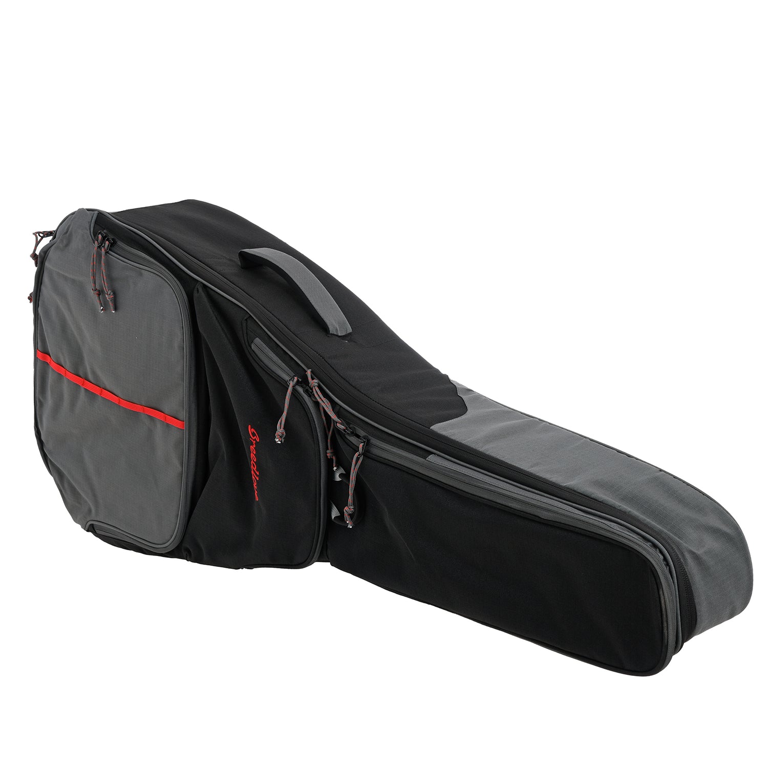 Form and function meet in Breedlove's Deluxe Gig Bag, designed with the working musician in mind. It’s sturdy enough for weekend dates or a life on the road. The fleece lined guitar compartment has adjustable waist and neck pillows for your instrument’s protection, while the exterior boasts a padded back panel and stowable padded shoulder and sternum straps for your comfort, as well. Lots of storage features, it makes showtime a cinch.