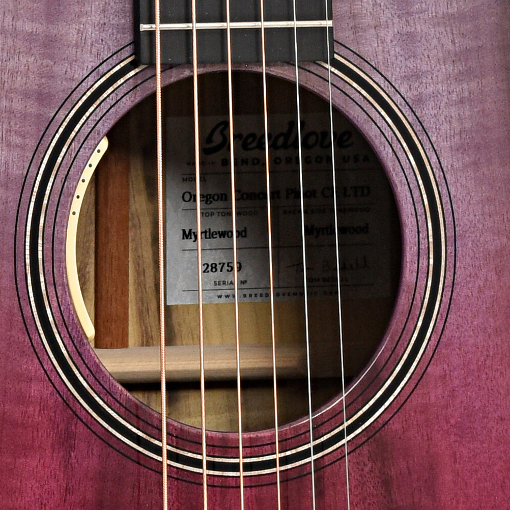 The Breedlove Oregon Concert Pinot CE Myrtlewood-Myrtlewood LTD is visually striking and it has the high-energy, balanced sound all-solid Myrtlewood is known for. Premium appointments and L.R. Baggs electronics complete this impressive acoustic guitar.