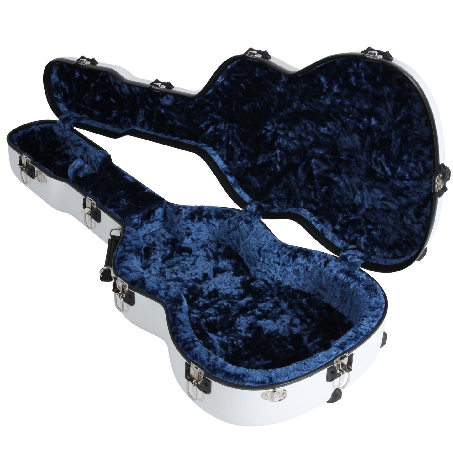 MARTIN & COLLINGS 12-FRET 0 or 14-FRET 0 - Extra heavy-duty fiberglass shell in white with blue interior lining, custom padded to fit Martin & Collings 12-fret 0 OR 14-fret 0 guitars. Case also features locking latch, bumper guards, textured finish, a comfortable handle and shoulder strap.