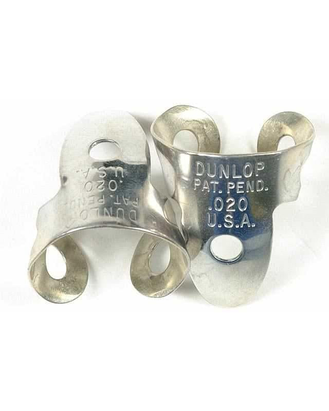 New, Dunlop adult sized (.020" gauge) finger pick with a smooth and virtually wear resistant Cobalt plating on the outside playing surface. Not only do these last, they do not drag or squeak on the strings, resulting in faster playing & cleaner sound. NASA has been using Cobalt plating on metal parts for years to reduce friction, now you can too. Please note that these are picks are not plated by Dunlop, we have the plating process done by a 3rd party.