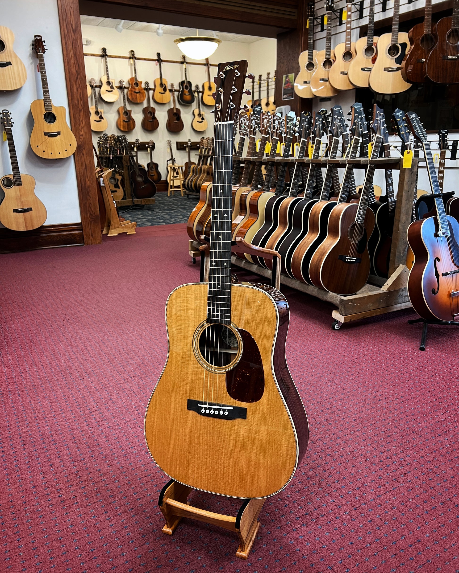 - Ebony peghead overlay with inlaid gold pearl Collings logo