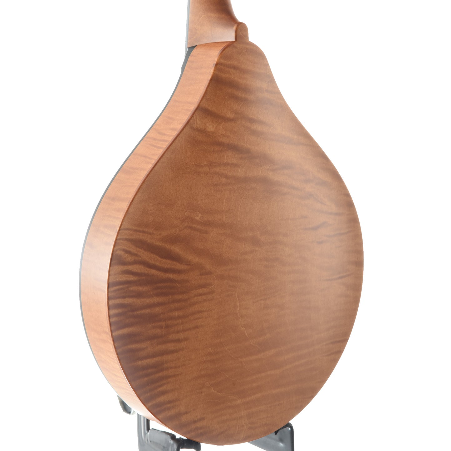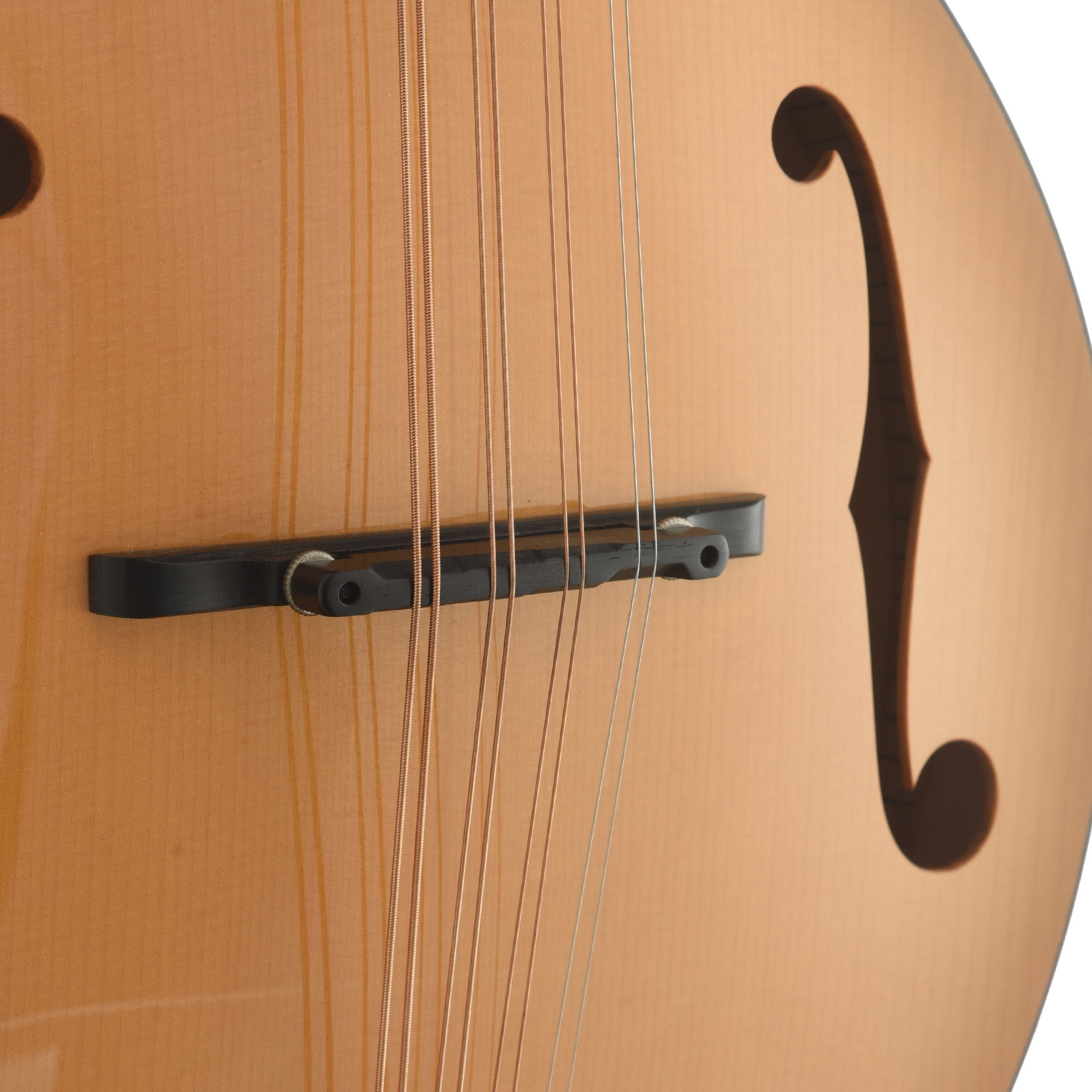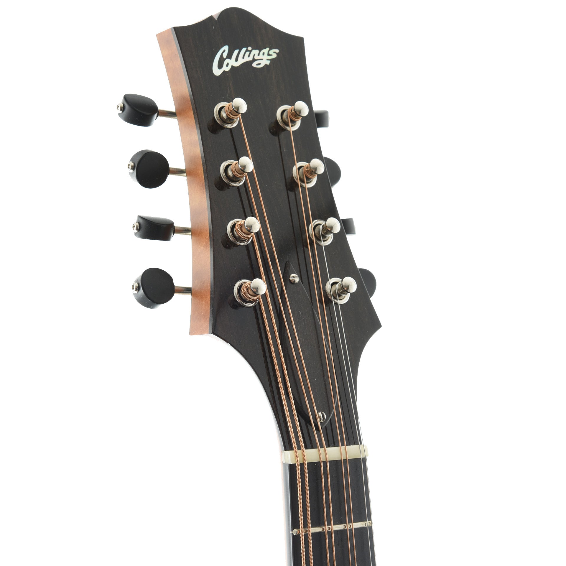 HONEY AMBER, TORTOISE BINDING, GLOSSY TOP - A-style body with f-shaped soundholes, solid carved maple back & rims, carved Adirondack spruce top, tone bar bracing, nickel hardware, honey amber satin finish with glossy top, tortoise top binding, radiused ebony fretboard (1-5/16" bone nut, 15.9" scale), adjustable truss rod. Pearl Collings logo in peghead. Shaped hardshell case. D'Addario J-76 strings.