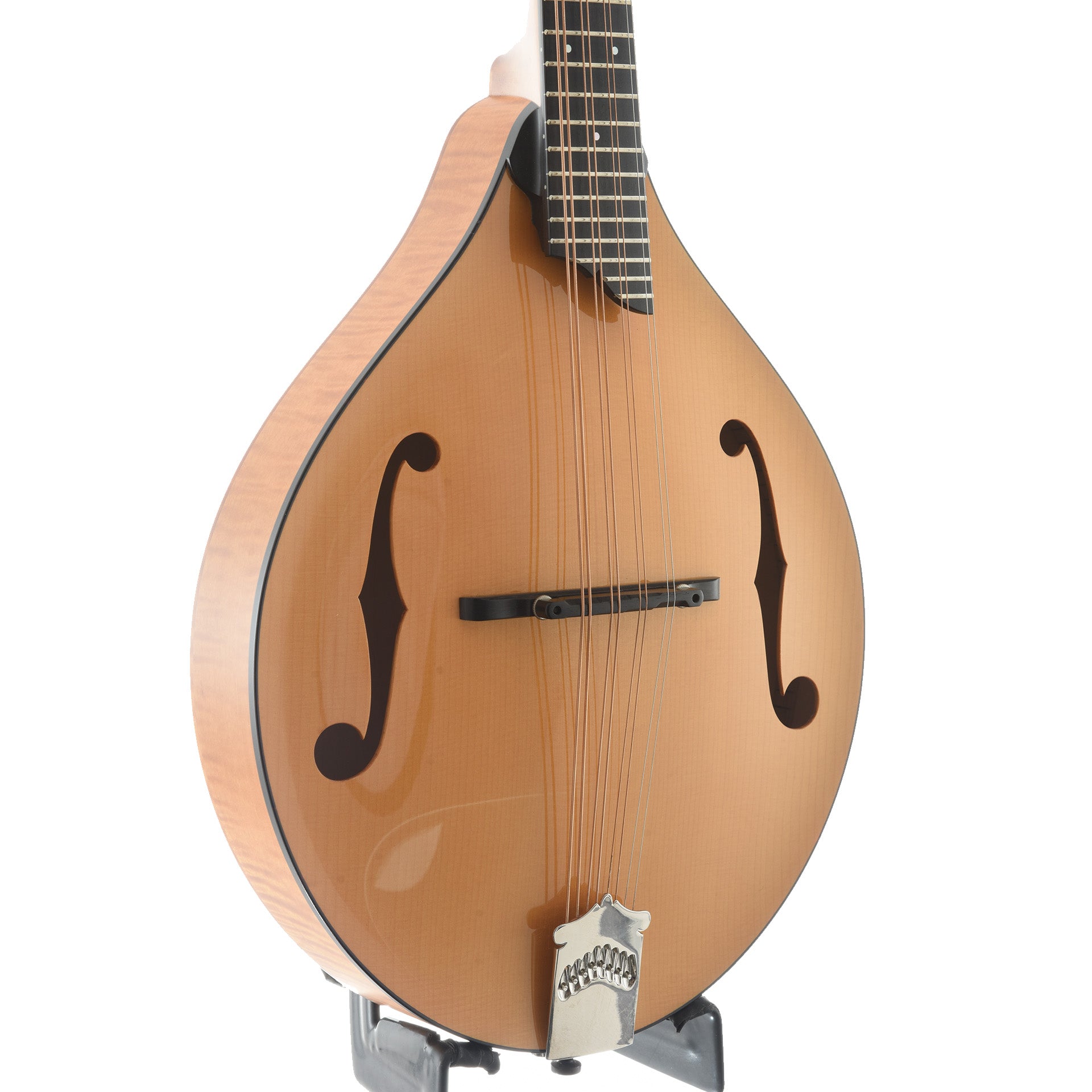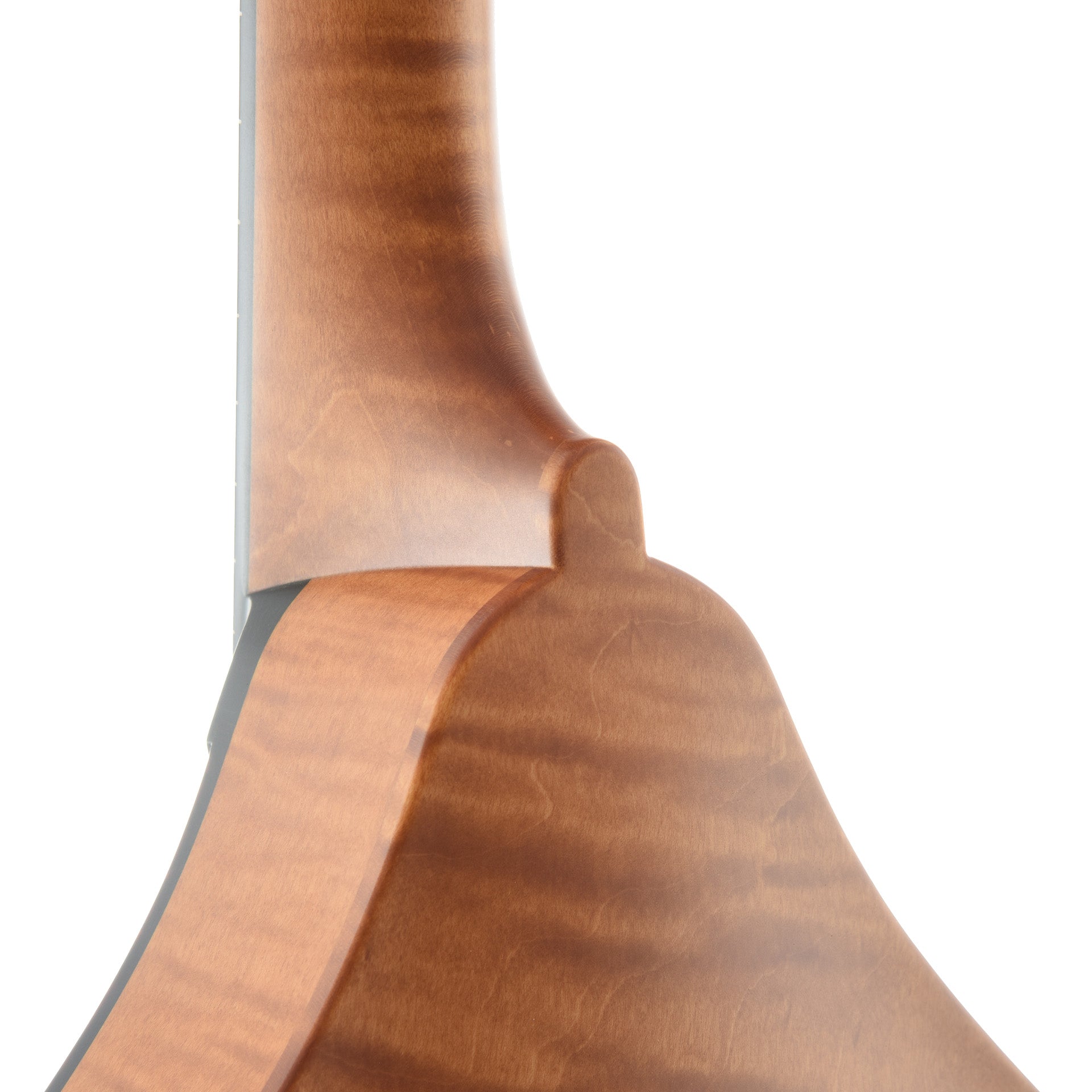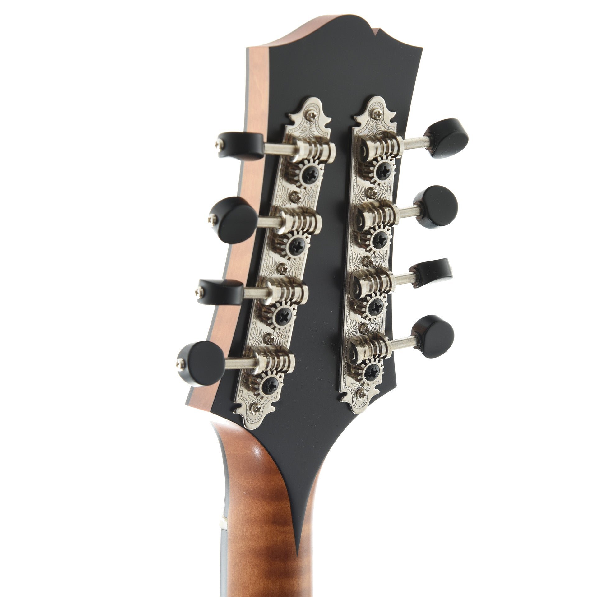 HONEY AMBER, TORTOISE BINDING, GLOSSY TOP - A-style body with f-shaped soundholes, solid carved maple back & rims, carved Adirondack spruce top, tone bar bracing, nickel hardware, honey amber satin finish with glossy top, tortoise top binding, radiused ebony fretboard (1-5/16" bone nut, 15.9" scale), adjustable truss rod. Pearl Collings logo in peghead. Shaped hardshell case. D'Addario J-76 strings.