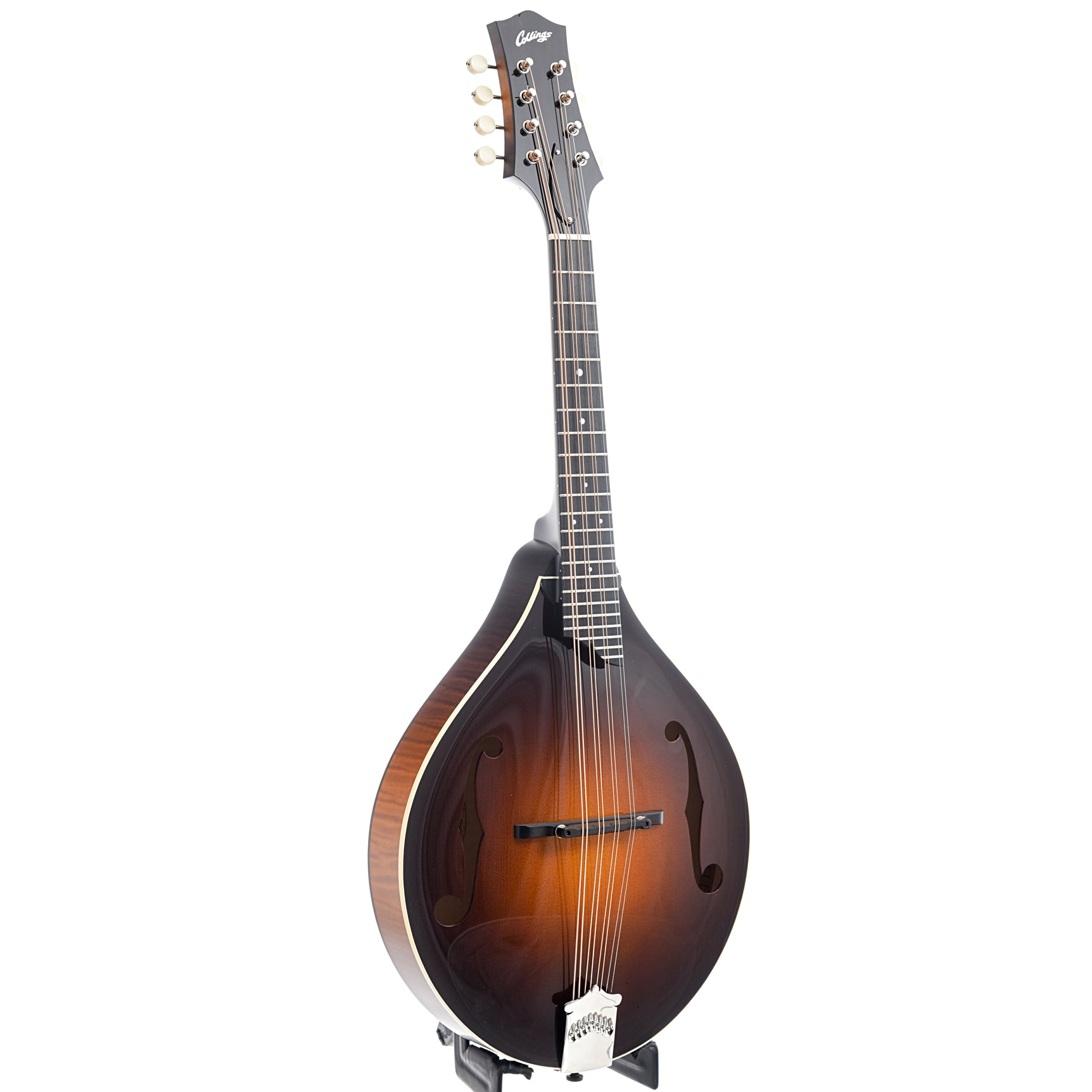 SUNBURST, IVOROID BINDING, GLOSSY TOP - A-style body with f-shaped soundholes, solid carved maple back & rims, carved Adirondack spruce top, tone bar bracing, nickel hardware, sunburst satin finish with glossy top, ivoroid top binding, radiused ebony fretboard (1-5/16" bone nut, 15.9" scale), adjustable truss rod. Pearl Collings logo in peghead. Shaped hardshell case. D'Addario J-76 strings.