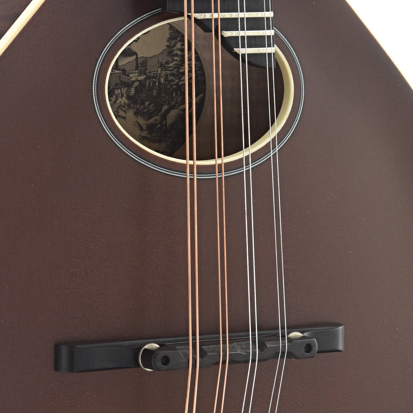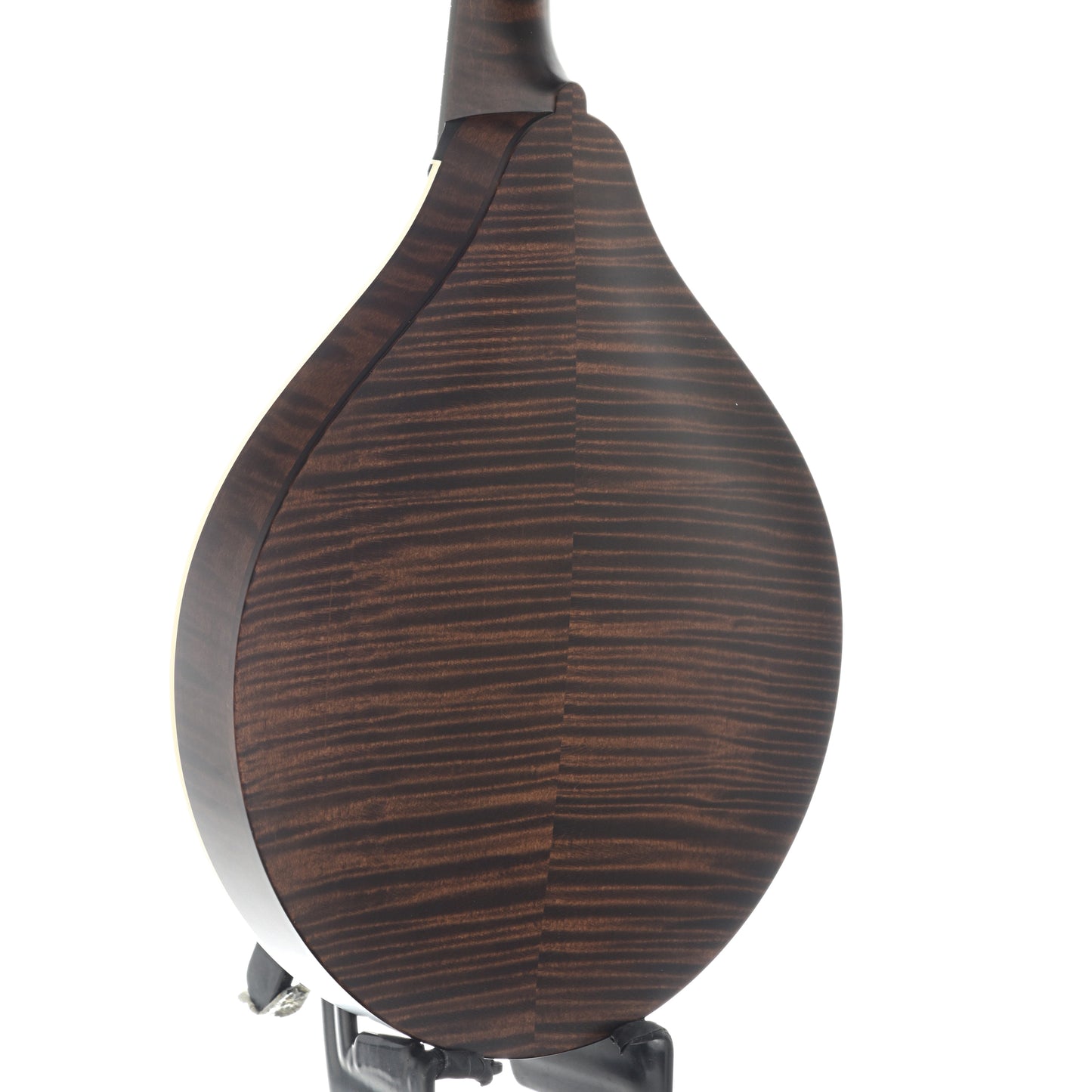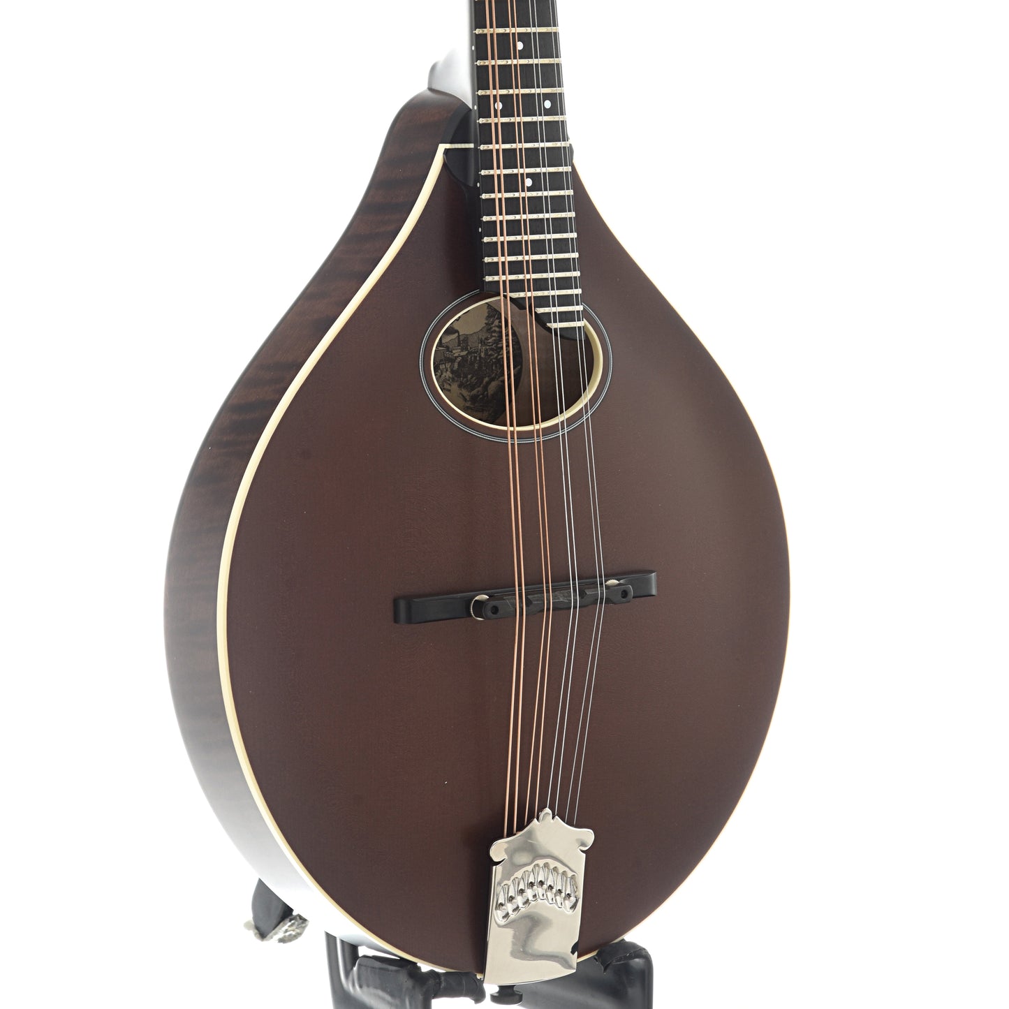 This beautiful A-style mandolin features a carved Engelmann spruce top and carved solid maple rims and back, all in a Sheraton Brown satin lacquer finish. An oval soundhole and X-bracing offer rich and vibrant tone that is ideal for players of Celtic, old time, classical, or jazz styles. The radiused ebony fingerboard offers a comfortable playing experience. Fine appointments include ivoroid top binding, a nickel plated one-piece Collings custom tailpiece, and nickel tuners with ivoroid buttons.