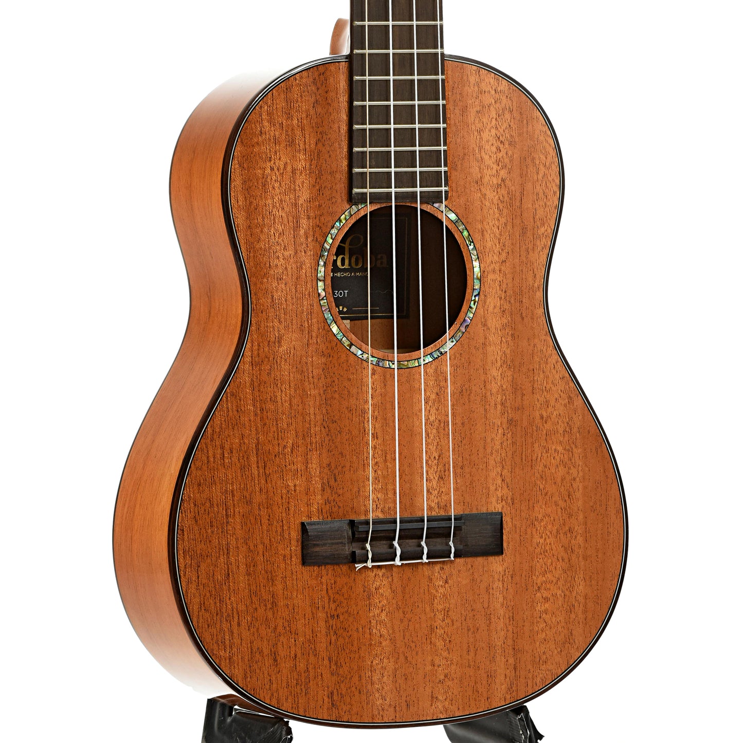 The first of Cordoba's 30 series, a premium line of boutique, all-solid tenor ukuleles approached from a guitar building perspective. Designed in collaboration with luthier Pepe Romero Jr., this 30 series features solid mahogany construction and premium appointments for warm, sustaining tone and elegant looks.