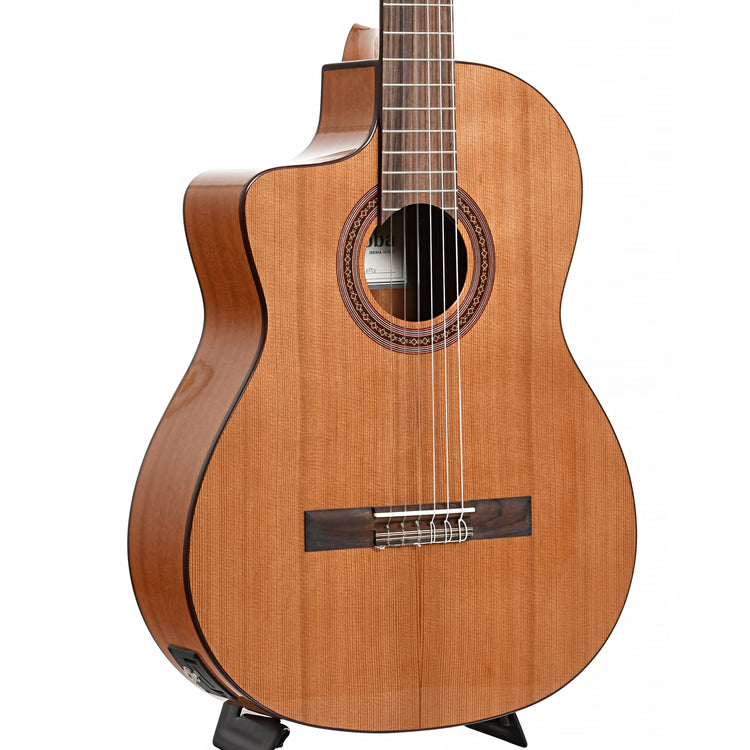 The Cordoba C5-CE Lefty has a soft cutaway to provide easy access to the upper register, plus a Fishman Presys II pickup & preamp to amplify your signal for stage and studio. Perfect as a first nylon-string guitar and ready for gigging, this lightweight guitar is built with a solid Canadian cedar top and mahogany back and sides to produce a warm, well-rounded tone with beautiful sustain both acoustically and amplified.