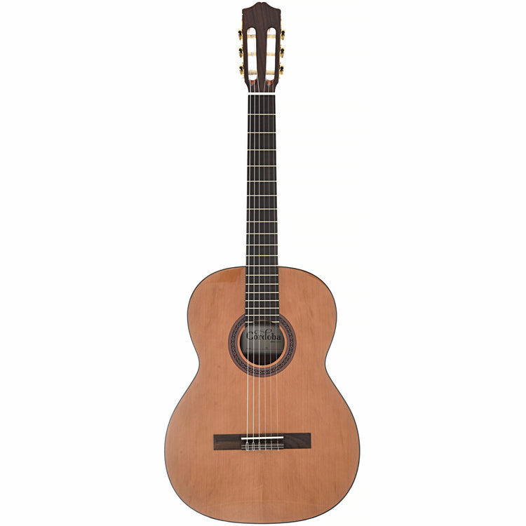 The Cordoba C5 classical guitar pairs a solid Canadian cedar top with laminated African mahogany back and sides to offer warm tone with excellent clarity. It's a popular model, great for serious beginners or players that want affordable quality that will last a lifetime.