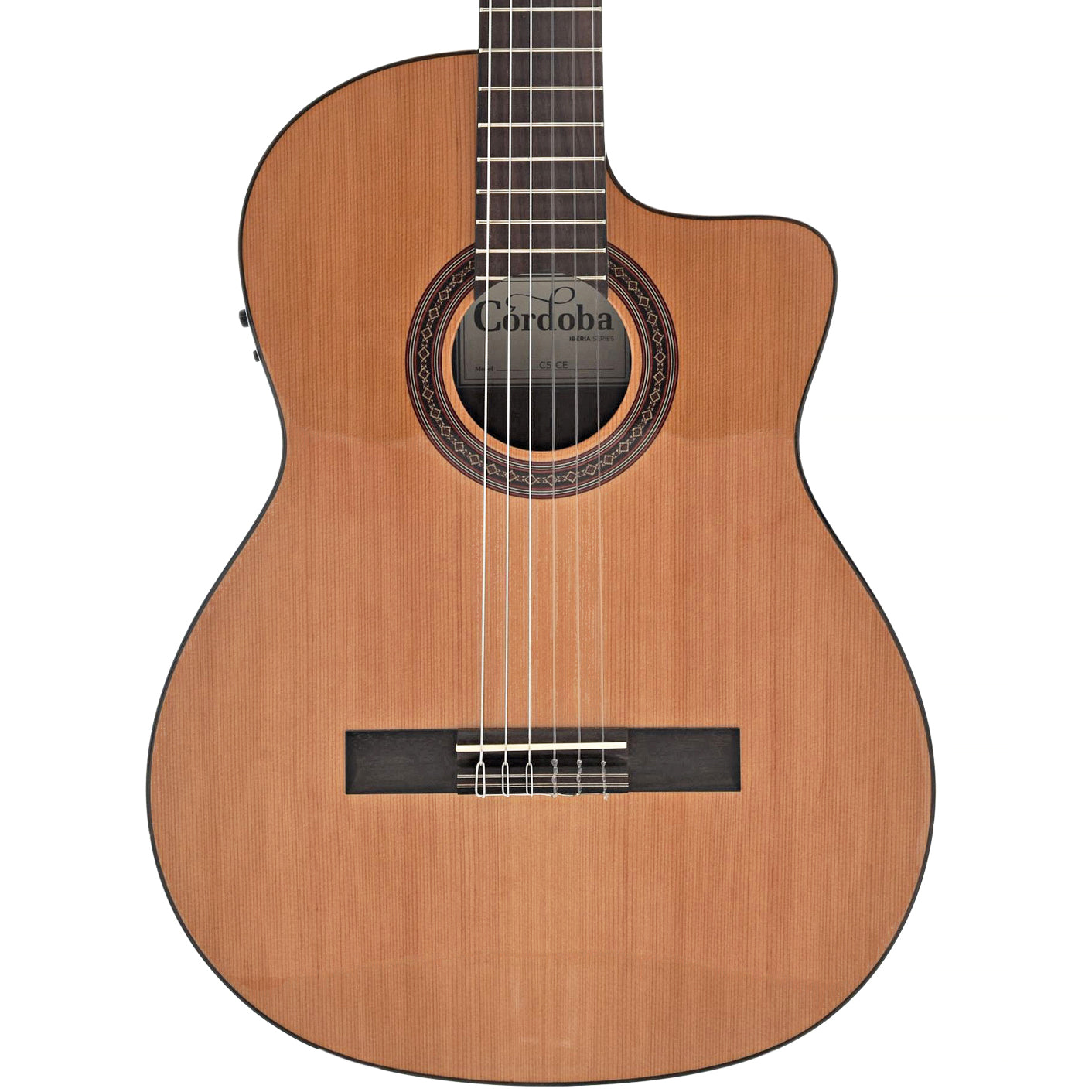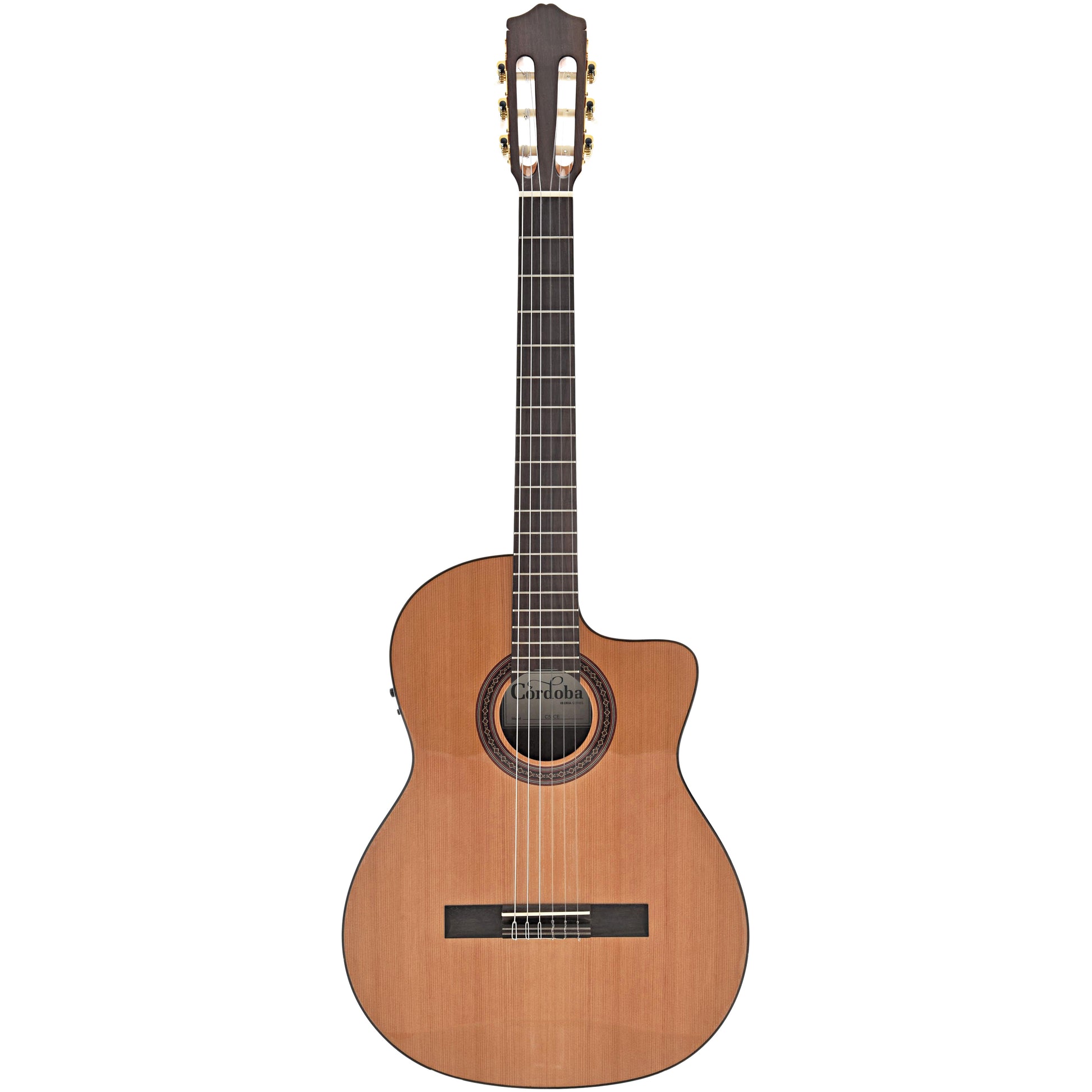 The entry level cutaway electric from Cordoba, perfectly suited to gigging situations which require amplification. A slightly thinner neck and soft cutaway make it easy to play. The Fishman Isys+ 2-band pickup includes an onboard tuner. Solid cedar top, laminated mahogany back and sides, mahogany neck, rosewood fingerboard, gold tuning machines, 50 mm nut, 650 mm scale, lacquer finish. NOTE: buy this guitar with a HumiCase and the warranty is upgraded from three years to limited lifetime. Iberia series.