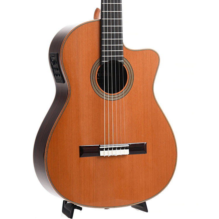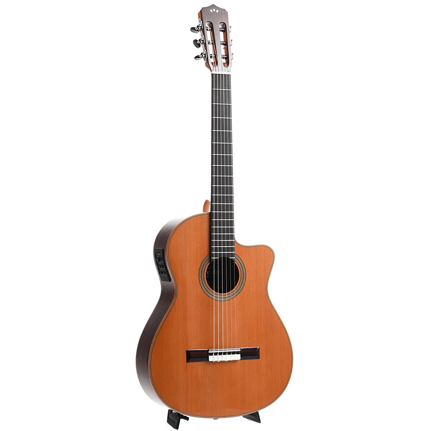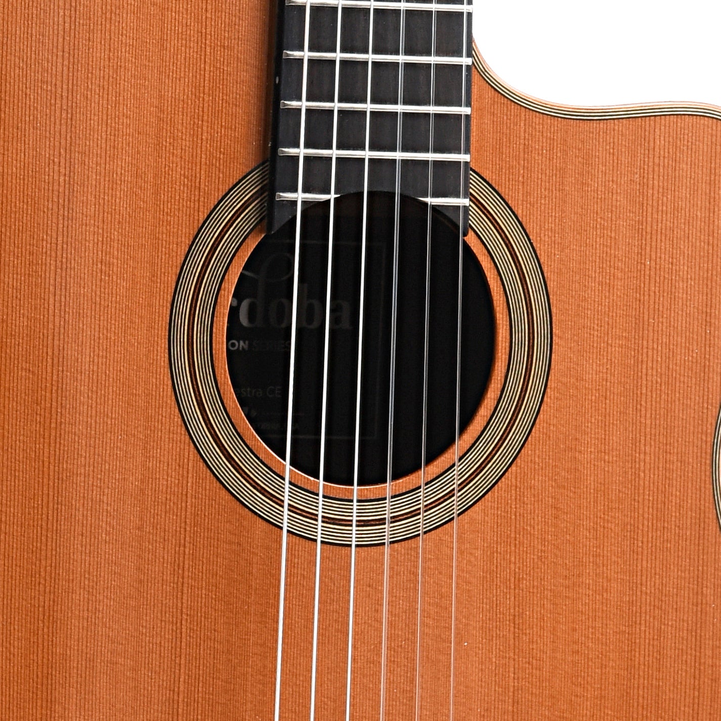 Timeless classical guitar design and modern features makes this Cordoba Orchestra SE a serious contender. Warm acoustic sounds from the cedar top and rosewood back and sides. Fine appointments like mahogany body binding, ebony fretboard, maple/ebony purfling and pearl dots. Project your sound with the onboard Fishman PreSys piezo pickup and mic system with blender, 3-band EQ and tuner.