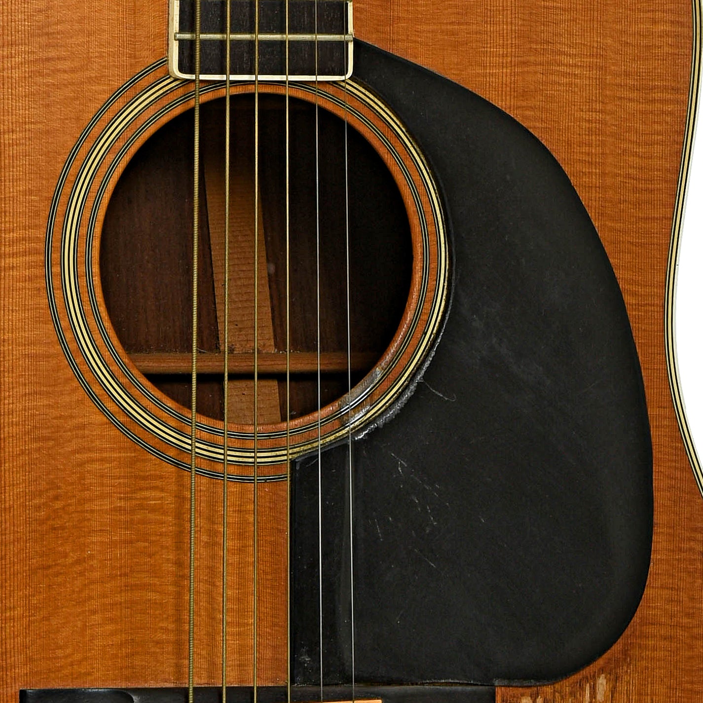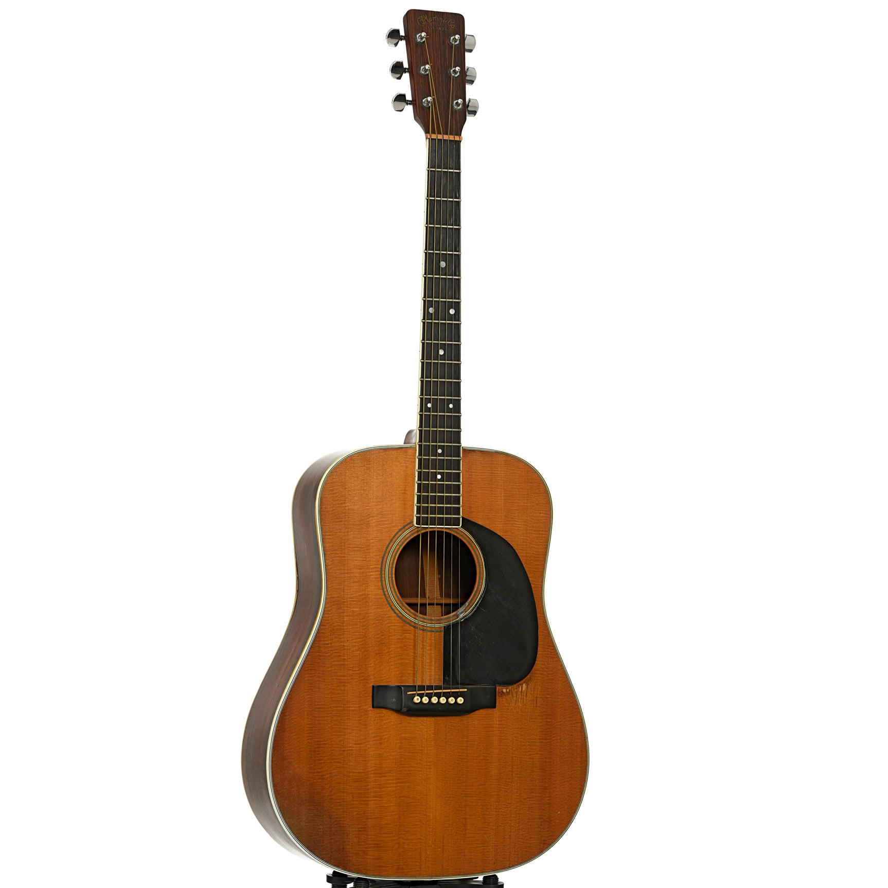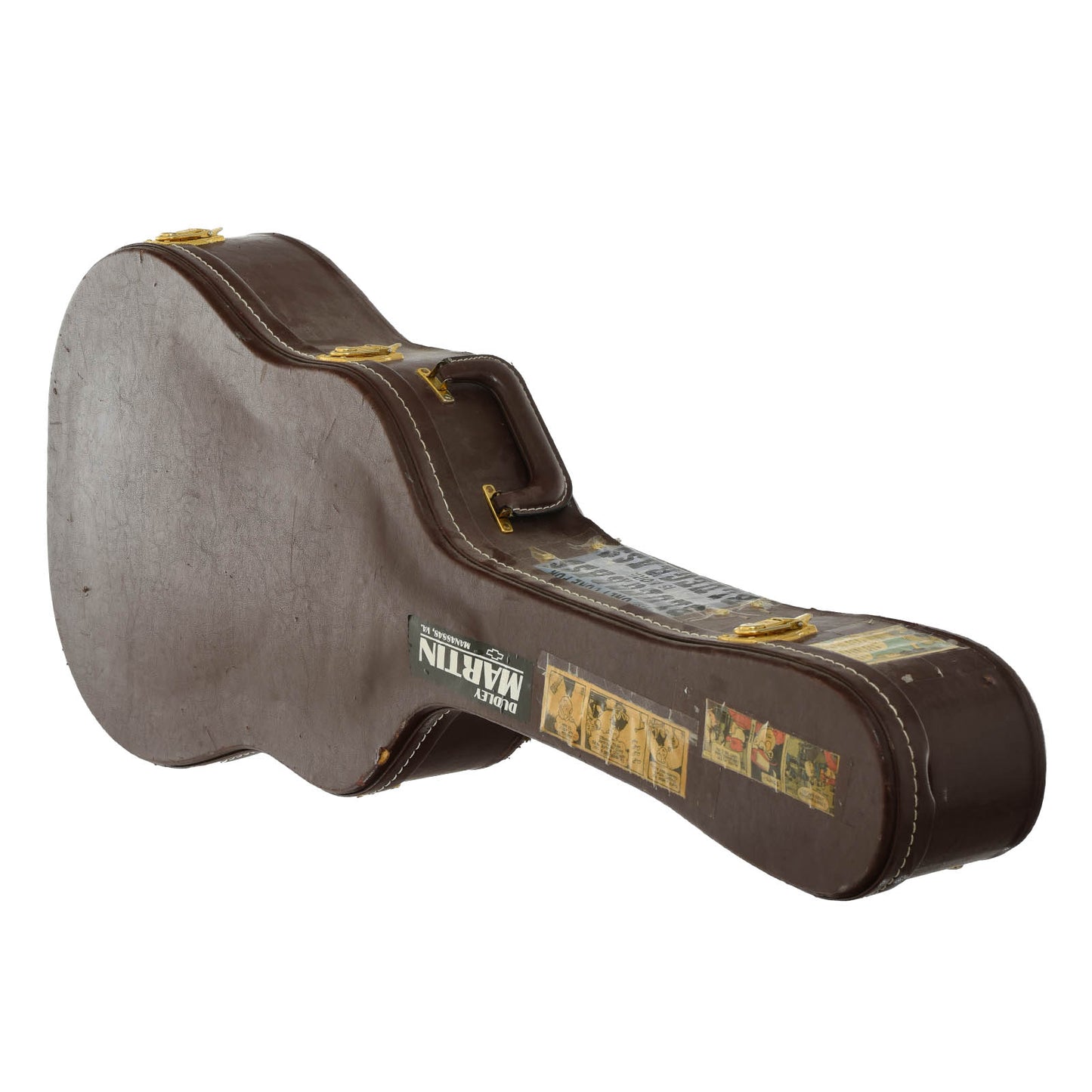 This Martin D-35 strummed many a tune, and has a spruce top, rosewood sides and the classic 3-piece back, and a 14-fret mahogany neck. Appointments include a rosewood peghead overlay, an ebony fingerboard with pearl dot inlays, and white binding on the body and fretboard. Hard shell case. Made in USA.
