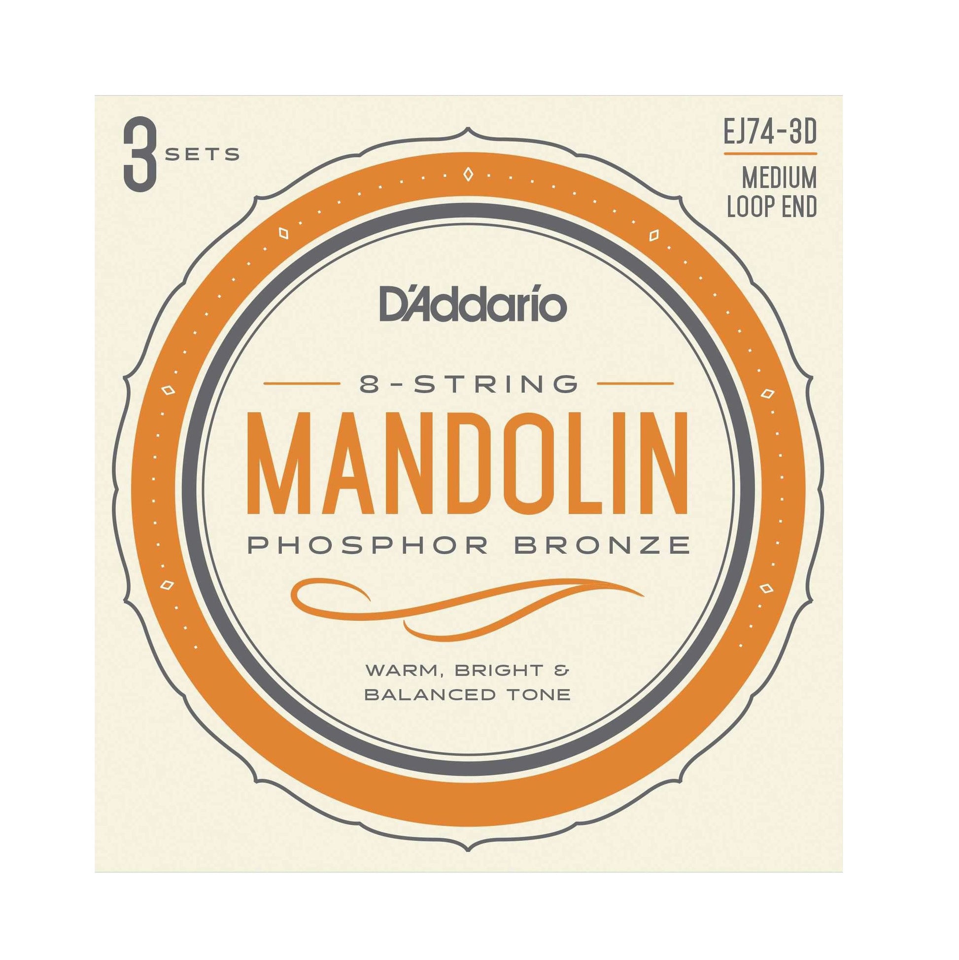 D'Addario EJ74 Phosphor Bronze Medium Gauge Mandolin Strings, Three Pack