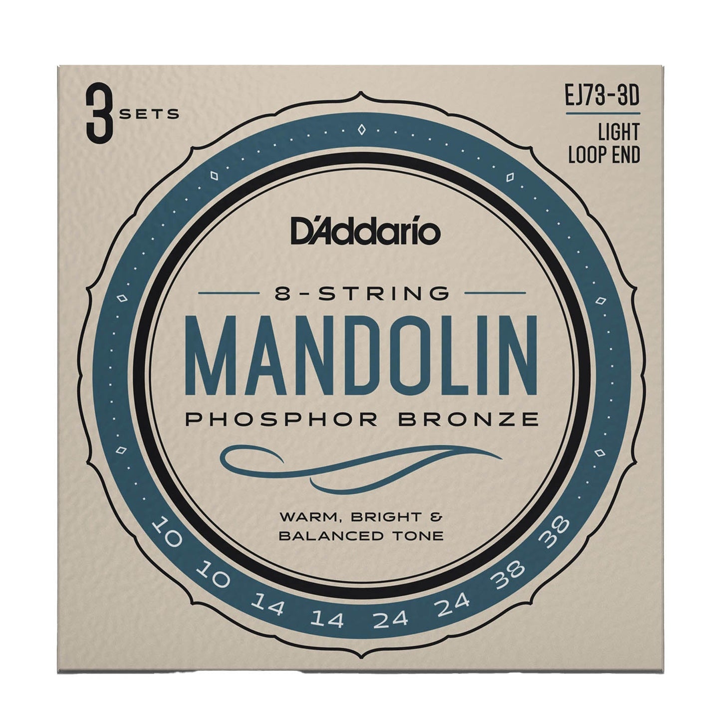 EJ73, D'Addario's most popular light gauge mandolin set, delivers warm and bright phosphor bronze tone with just the right amount of tension for easy playability and projection. Loop end construction for universal fit. 3-pack.