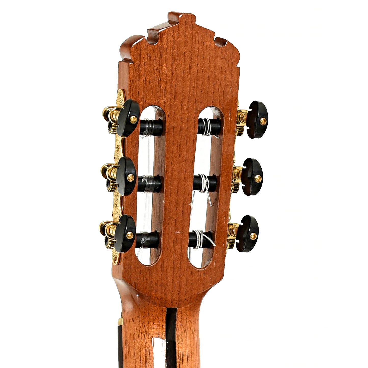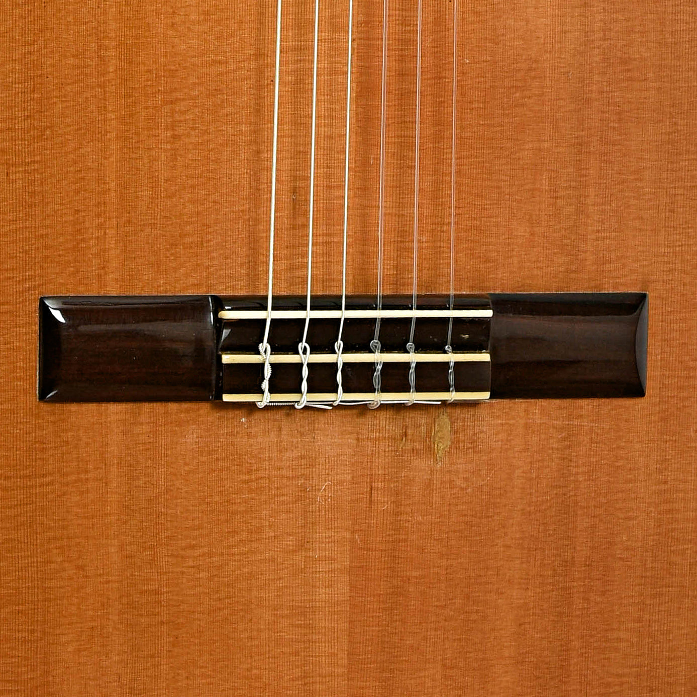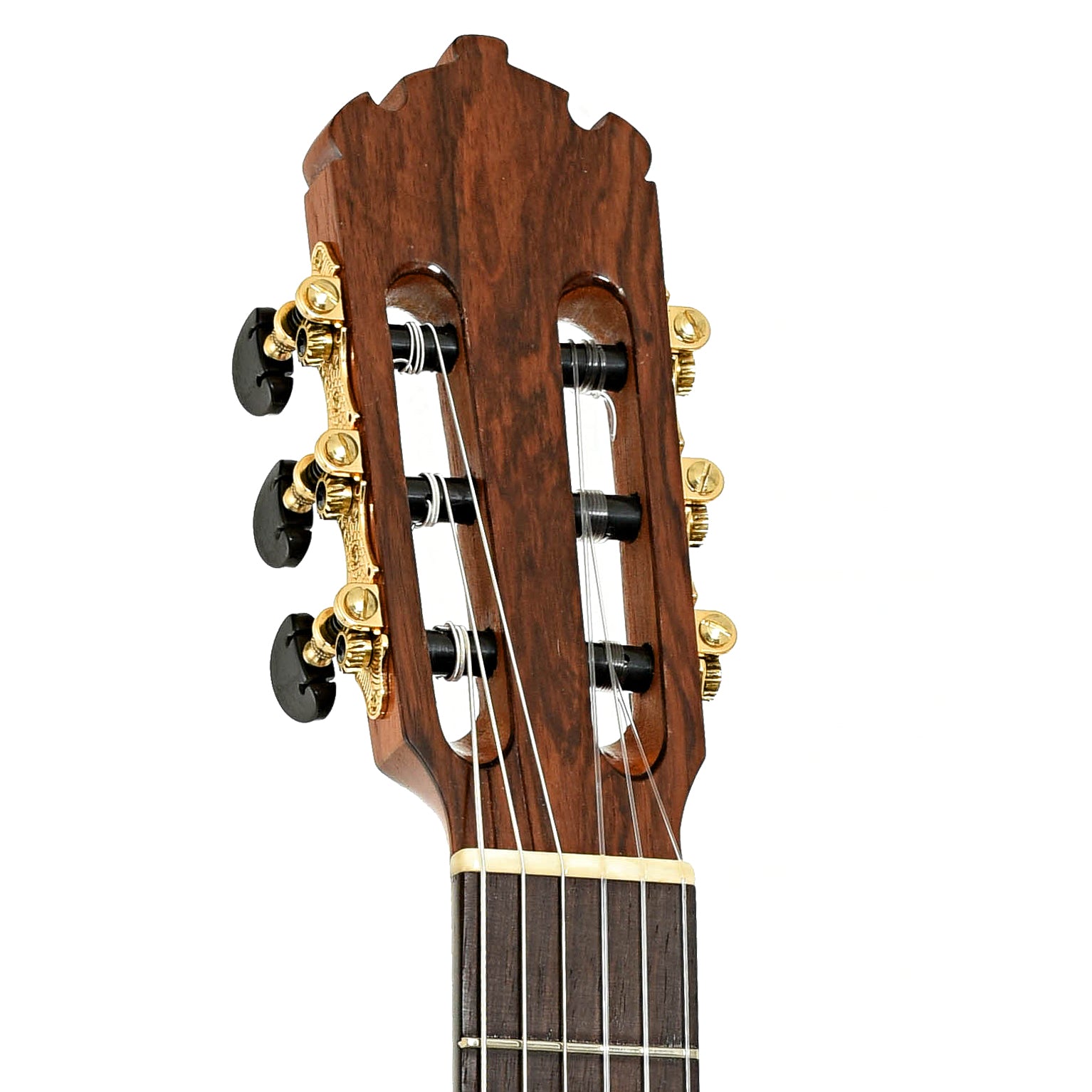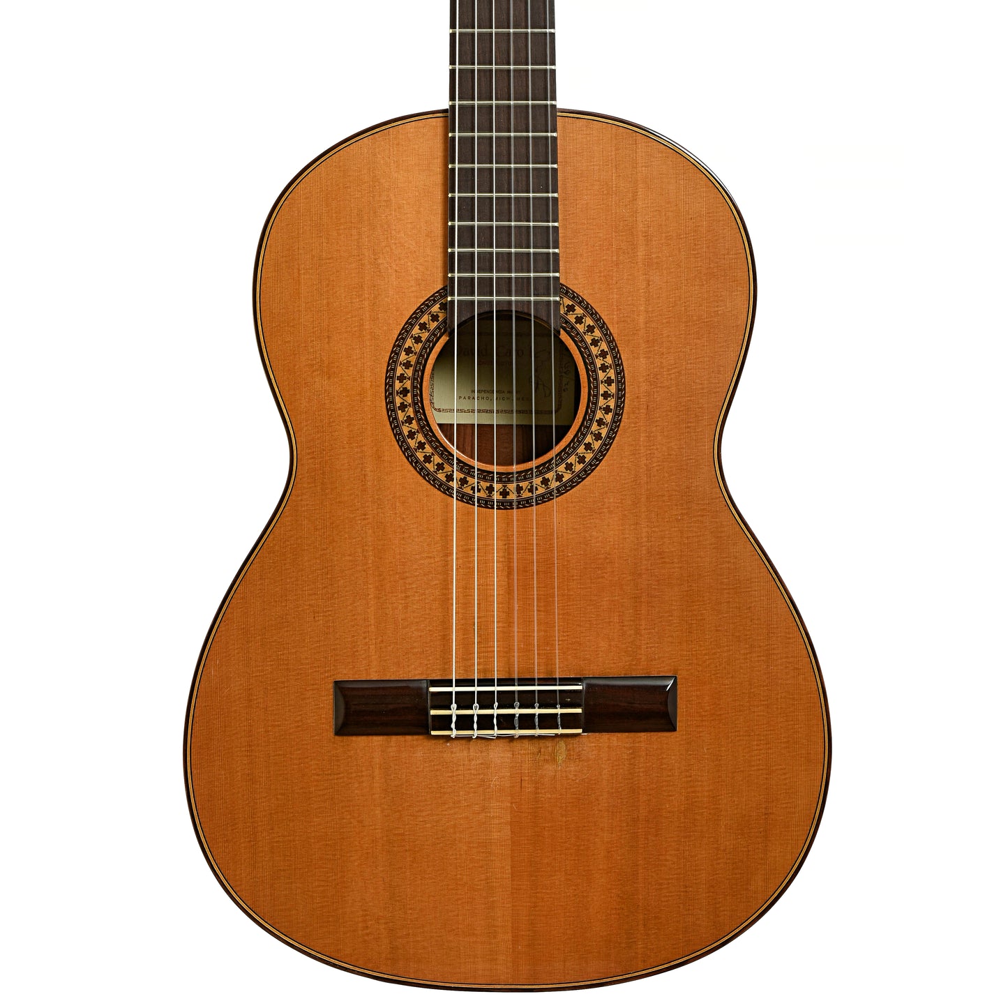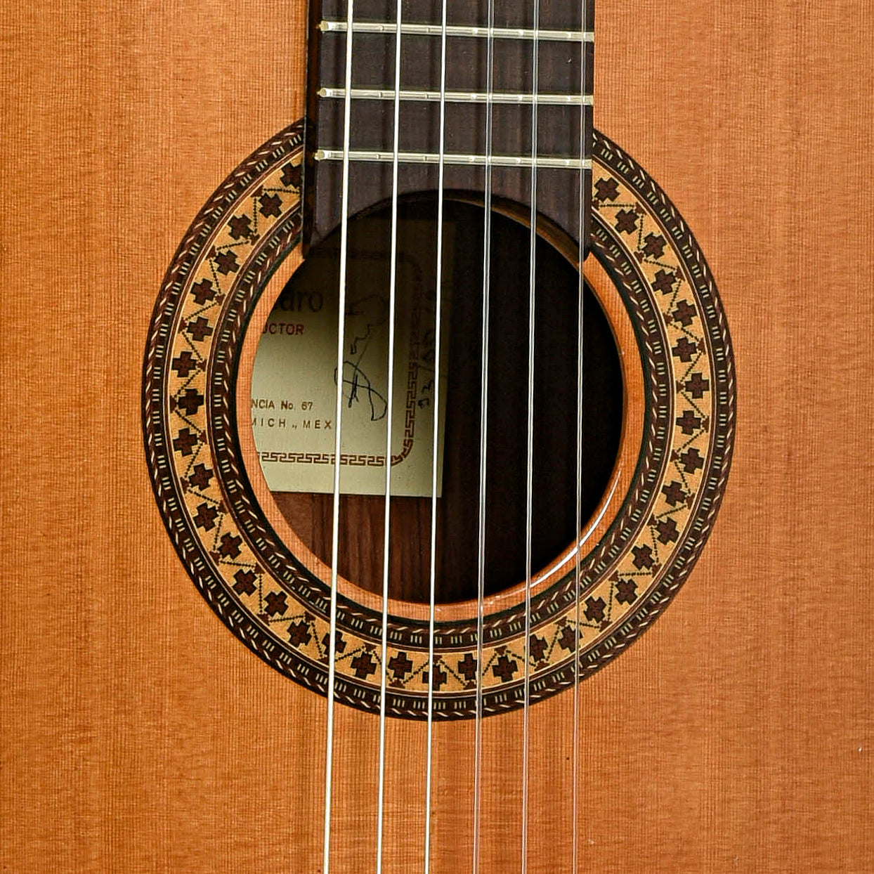 This solid wood classical by David Caro features a fan-braced cedar top, Palo Escrito back, sides, and bridge, and an ebony fingerboard. Der Jung tuners installed. Warm sounds at a bargain! Hard shell case. Made in the guitar town of Paracho, Mexico. On consignment.