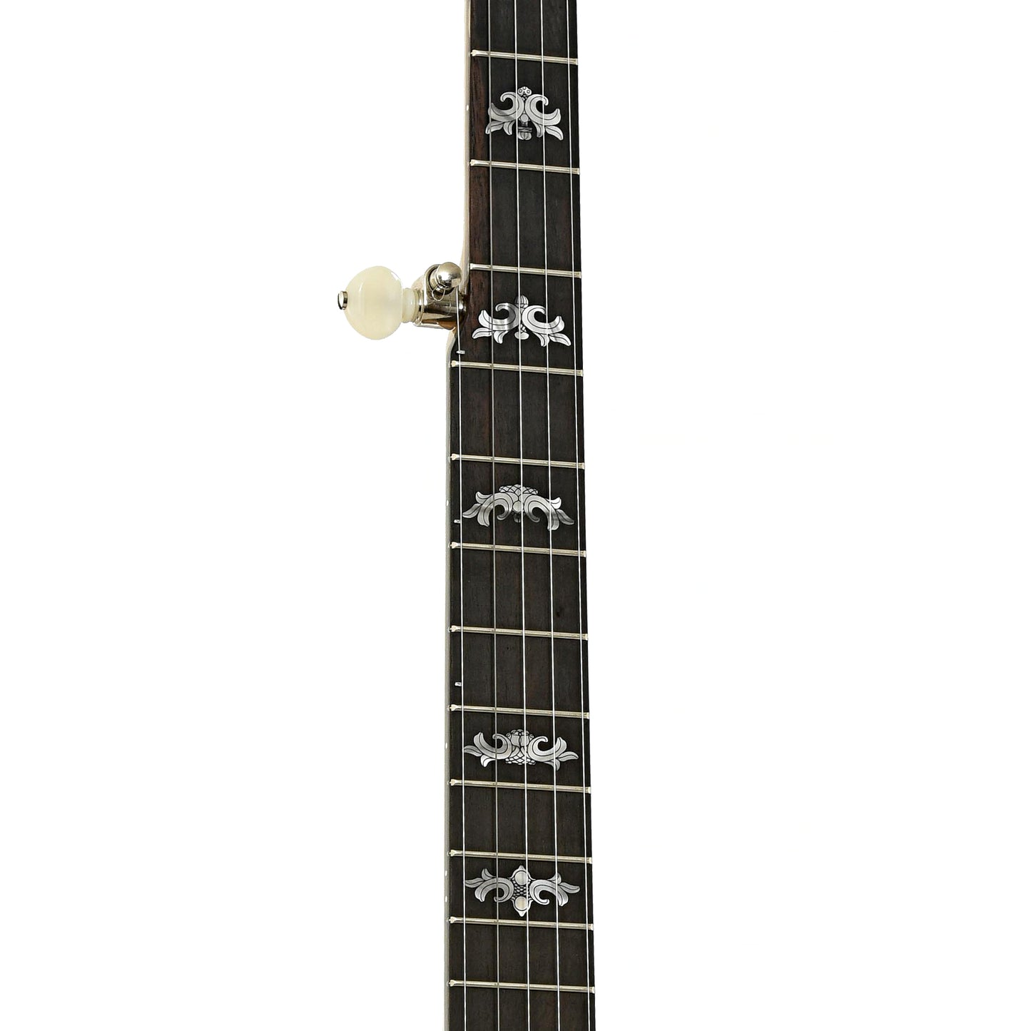 This lightweight, limited edition Deering 40th Anniversary model features a white oak resonator with double tortoise plastic binding, a white oak neck, and a 3-ply rim with an integral tone ring. It’s fitted with a 2-piece flat plate flange and an ebony fingerboard and peghead overlay with fancy engraved pearl inlays. The white oak truss rod cover is signed by Greg Deering. Spikes installed at frets 7 and 9. Lovely tone! Includes the original hard shell case. Made in the USA. On consignment.